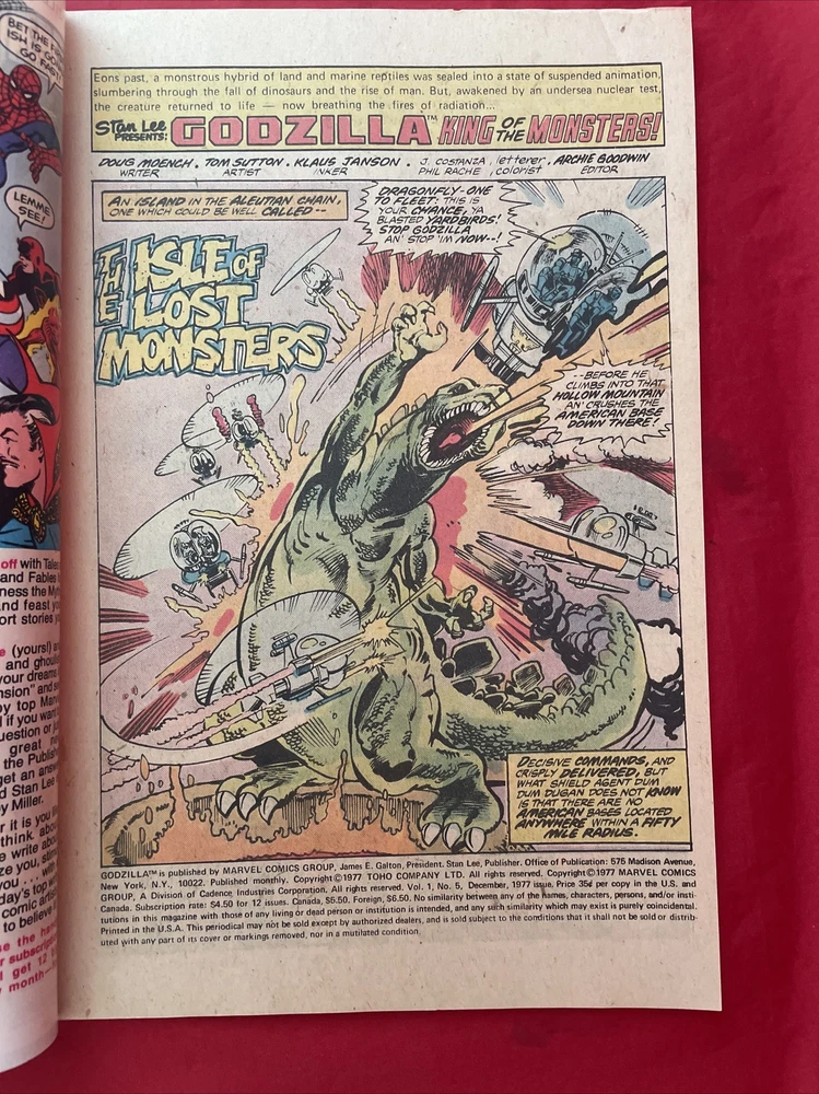 GODZILLA King of the Monsters #5 Isle of Living Demons 1977 Back top left cover slightly damaged. Please see photos. Book/magazine is in good condition in my opinion. Great book/magazine to add to your collection or start a new one. No reasonable offer refused. Shipping discount given on multiple purchases. Look at my store for other great deals. Thanks for looking.