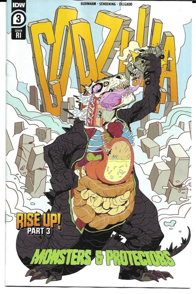 GODZILLA MONSTERS & PROTECTORS #3 (OF 5) 10 COPY MONLONGO IN IDW PUBLISHING (W) Erik Burnham (A) Dan Schoening (CA) Jorge Monlongo While the Shobijin seek out proof that mankind is worth saving, the Linival Corporation, upset that their plans to help mankind with a new energy source have been interrupted by Godzilla, have come up with a plan to fight back against the King of the Monsters... and that plan is a kaiju of their own: BIOLLANTE. The will titans tussle here in the third chapter, and no matter which monster wins, it could spell trouble! ------------- Save on shipping by combining extra comics in the cart prior to checkout!!! We do not promise any specific grade or condition. View the scans provided carefully on as large a monitor as possible and if you need more information to decide stop by the store. New books from Diamond were bagged upon arrival with boards for storage and/or store display. PayPal verified shipping addresses only if not picking up in store. Not shipping to Canada or other international locations. VA Shipping Destinations and local pick-up will have VA Sales Tax at 5.5% added. Priority Mail shipping is NOT a guaranteed service for shipping time. Most are fast but occasionally one can take weeks to arrive. This is not something we have any control over.