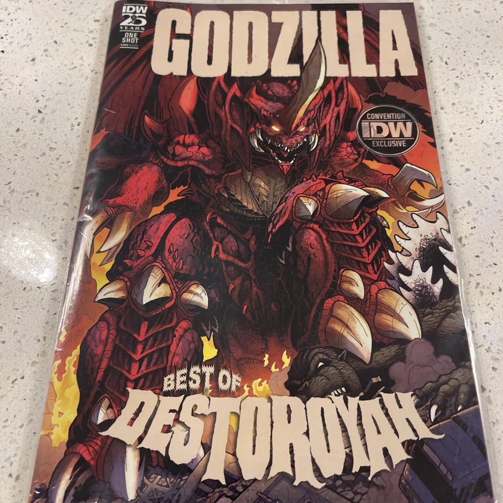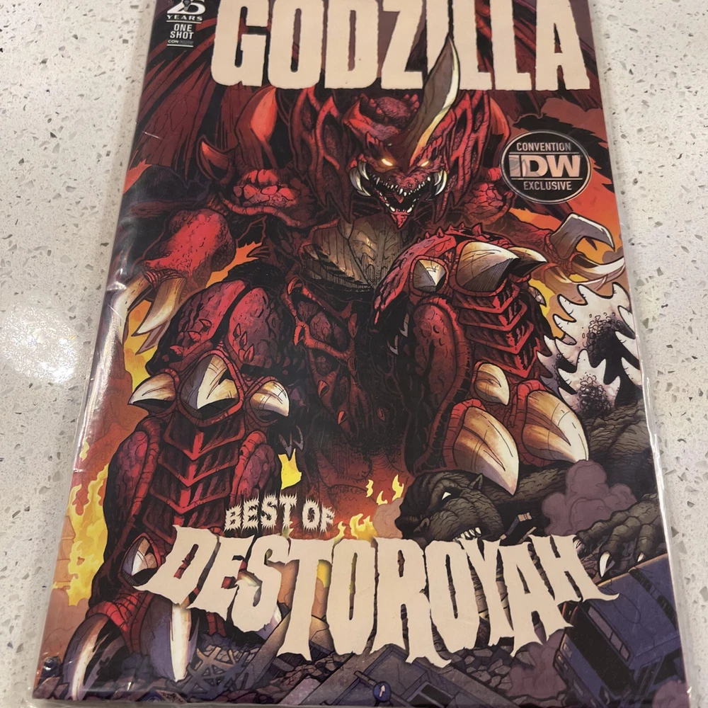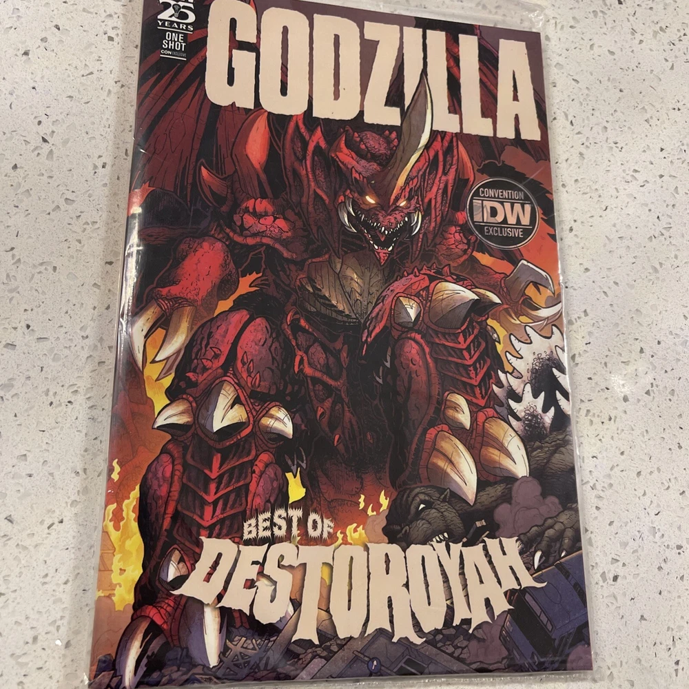 Experience the epic showdown between the King of Monsters and his formidable rivals in "Godzilla Rivals #1: Destoroyah," a must-have for any fan of the modern age of comics. This special San Diego Comic Con variant cover edition published by IDW in 2024 captures the essence of the legendary creatures in stunning detail, making it a standout addition to any collection. Embrace the excitement of the genre as you delve into the vibrant world of US comics with this issue, which is a part of the celebrated "Godzilla" series. Without a doubt, this comic book is a treasure for enthusiasts of the genre and collectors alike, offering a thrilling narrative and rich artwork that brings the battle to life.
