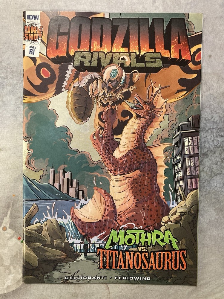 IN STOCK NOW!!! IDW COMICS - GODZILLA RIVALS : MOTHRA VS. TITANOSAURUS ONE SHOT 1:10 RI VARIANT. BF BRAND NEW, NEVER READ condition. Each comic comes bagged and boarded separately. ------------------------------------------------------------------------------------------------------------------------------- SHIPPING: MEMBERS IN THE UNITED STATES: Shipping is $ 9.99 no matter how many COMICS, TPBs, HARDCOVERS, OR MAGAZINES that you would like to include with your order! Shipped via USPS Ground Advantage Mail. We offer Priority Mail at $8.99 via USPS Priority Mail Flat-Rate Padded Envelope (fits up to 10 bagged/boarded standard comics); please inquire for a combined Priority Shipping quote. If you would like to opt for the USPS Priority Medium Flat-Rate BOX, that will be $16.99. This will allow extra room to combine additional items in the same shipment. (please inquire to check capacity of box) All U.S. orders ship with USPS TRACKING NUMBER! PLEASE NOTE: In order to receive Free Shipping on Multiple Items, we must combine the items. When you are done shopping, use the "Request a Total" feature and we will send you the combined invoice so you can make a single payment for the order. ---------------------------------------------------------------------------------------------------------------------- INTERNATIONAL MEMBERS: PLEASE USE SHIPPING CALCULATOR. -------------------------------------------------------------------------------------------------------------------- PAYMENT: Residents of PA pay 6% State sales tax (added automatically). PAYPAL accepted. ------------------------------------------------------------------------------------------------------------------------ Our hours are: Mon-Sat 12pm-7pmEST, and Sunday 12pm-5pmEST ------------------------------------------------------------------------------------------------------------------------- Thanks and Happy Bidding!!