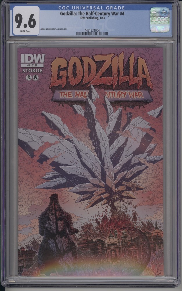 This is a fantastic issue of Godzilla: The Half-Century War #4, graded 9.6 by Certified Guaranty Company (CGC). The comic book features the iconic Godzilla character in an action-packed adventure that will captivate readers. The issue is a first printing and comes from IDW Publishing, known for their high-quality comic books. The comic is written by James Stokoe, who is also the cover artist. The issue is a single unit, and the language is English. It is a great addition to any collection and perfect for fans of US Comics, superheroes, and science fiction.