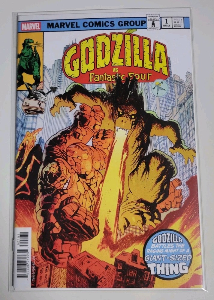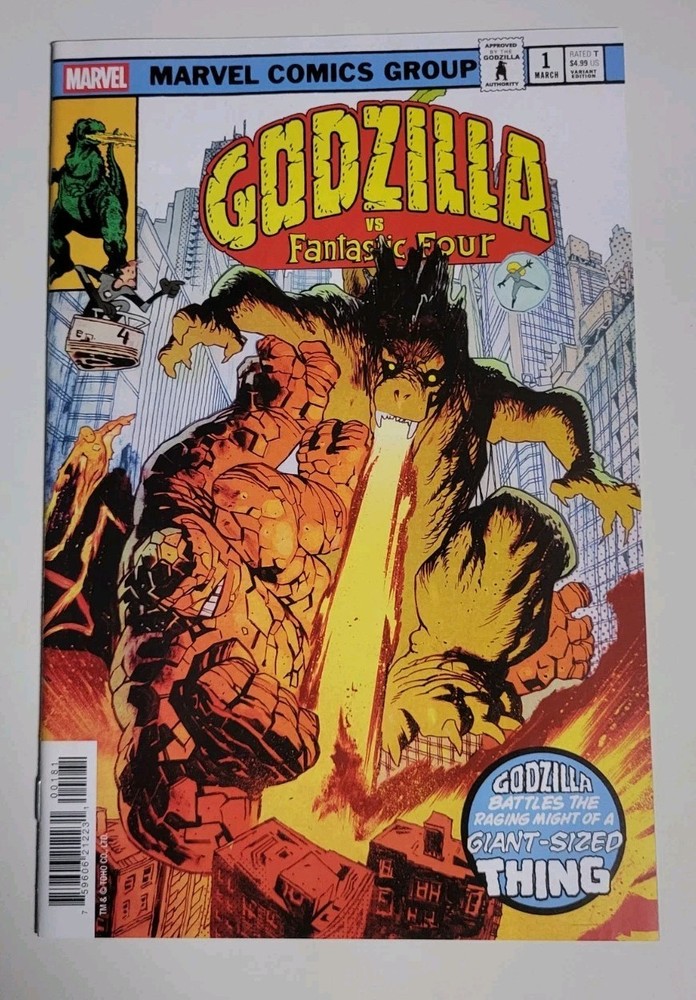 GODZILLA VS. FANTASTIC FOUR #1 03/26/2025 NM-/VF+ HARREN VARIANT MARVEL COMICS. Shipped SECURELY USPS Mail. Bagged and Boarded. GODZILLA VS. FANTASTIC FOUR #1 JAMES HARREN GODZILLA KING OF THE MONSTERS HOMAGE VARIANT We offer EASY AUTOMATIC Combined Shipping! Check out our storefront for details. Please let me know if you have any questions!!! THE BATTLE OF THE CENTURY STARTS HERE! The start of six sensational, action-packed issues with MARVEL HEROES battling THE KING OF THE MONSTERS from its many different eras! How will GODZILLA'S lore mix with the MIGHT MARVEL UNIVERSE? Find out as history is twisted when icons like the FANTASTIC FOUR, SPIDER-MAN, HULK, X-MEN and THOR go face off against one of the greatest monsters of all time! This issue, witness a threat never before seen as KING GHIDORAH descends upon the Earth with the POWER COSMIC as GALACTUS' newest HERALD! Can the FANTASTIC FOUR stop him from destroying New York along with the rest of the planet? It's a CITY SMASHING SPECTACULAR as GODZILLA with the help of the SILVER SURFER join forces to stop the world from certain annihilation! A must for MARVEL and GODZILLA FANS! ROUND 1 IN A SERIES OF 6 ONE-SHOT THROWDOWNS!