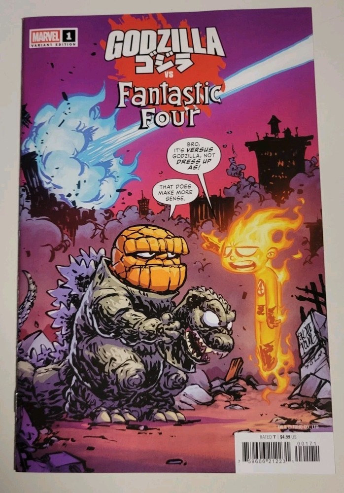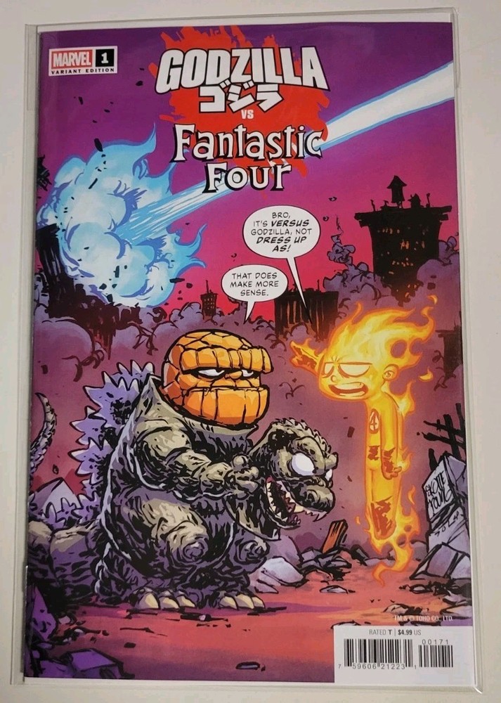GODZILLA VS. FANTASTIC FOUR #1 03/26/2025 NM-/VF+ YOUNG VARIANT MARVEL COMICS. Shipped SECURELY USPS Mail. Bagged and Boarded. GODZILLA VS. FANTASTIC FOUR #1 SKOTTIE YOUNG VARIANT We offer EASY AUTOMATIC Combined Shipping! Check out our storefront for details. Please let me know if you have any questions!!! THE BATTLE OF THE CENTURY STARTS HERE! The start of six sensational, action-packed issues with MARVEL HEROES battling THE KING OF THE MONSTERS from its many different eras! How will GODZILLA'S lore mix with the MIGHT MARVEL UNIVERSE? Find out as history is twisted when icons like the FANTASTIC FOUR, SPIDER-MAN, HULK, X-MEN and THOR go face off against one of the greatest monsters of all time! This issue, witness a threat never before seen as KING GHIDORAH descends upon the Earth with the POWER COSMIC as GALACTUS' newest HERALD! Can the FANTASTIC FOUR stop him from destroying New York along with the rest of the planet? It's a CITY SMASHING SPECTACULAR as GODZILLA with the help of the SILVER SURFER join forces to stop the world from certain annihilation! A must for MARVEL and GODZILLA FANS! ROUND 1 IN A SERIES OF 6 ONE-SHOT THROWDOWNS!