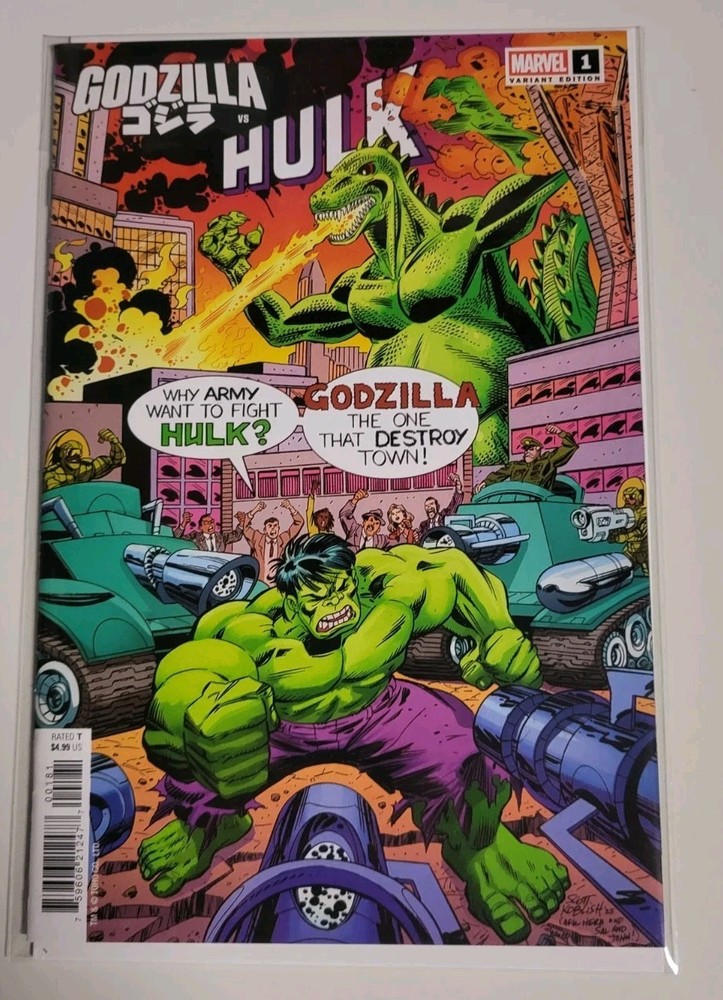 GODZILLA VS. HULK #1 04/16/2025 VF+ KOBLISH VARIANT MARVEL COMICS. Shipped SECURELY USPS Mail. Bagged and Boarded. GODZILLA VS. HULK #1 SCOTT KOBLISH CLASSIC VARIANT We offer EASY AUTOMATIC Combined Shipping! Check out our storefront for details. Please let me know if you have any questions!!! ROUND TWO: VS. THE INCREDIBLE HULK! GENERAL ROSS has no tolerance for monsters in any form. With his anti-kaiju taskforce THE THUNDERBOLTS he's taken down or imprisoned the biggest and baddest monsters on the planet: Fin Fang Foom, Mothra, Kumonga, even the Hulk. Now all that's left is his biggest hunt of all...GODZILLA. But the Thunderbolts' efforts to bring their last monster to heel may just result in the most destructive battle royale to ever rock the earth. It's time to figure out who's really the strongest there is! ROUND TWO IN A SERIES OF SIX ONE-SHOT THROWDOWNS!