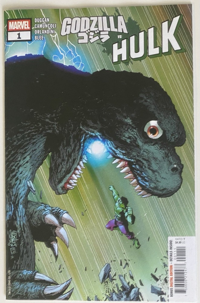 THIS LISTING IS FOR 1 COMIC: GODZILLA VS. HULK NO.1 REGULAR COVER COVER ART BY GIUSEPPE CAMUNCOLI STORY AND ART BY GERRY DUGGAN, GIUSEPPE CAMUNCOLI, DANIELE ORLANDINI & FEDERICO BLEE PUBLISHED BY MARVEL COMICS IN 2025, THIS COMIC IS IN NEAR MINT CONDITION! FIRST PRINTING! IT CAN BE YOURS FOR A GREAT PRICE! ALL COMICS ARE BAGGED , AND SOME MAY BE BOARDED! ALL SALES ARE FINAL, SO PLEASE BE SURE TO INQUIRE BEFORE AUCTION'S END IF YOU HAVE ANY QUESTIONS ABOUT THE CONDITION OF ANY ITEMS! BUYER PAYS S/H! WE SHIP PRIORITY MAIL! INSURANCE UPON REQUEST ONLY! YOU CAN COMBINE OTHER ITEMS WON FROM OUR OTHER AUCTIONS OR OUR eBay STORE TO SAVE ON SHIPPING RATES! THANKS FOR VIEWING THIS ONE AND HAPPY BIDDING!!!!