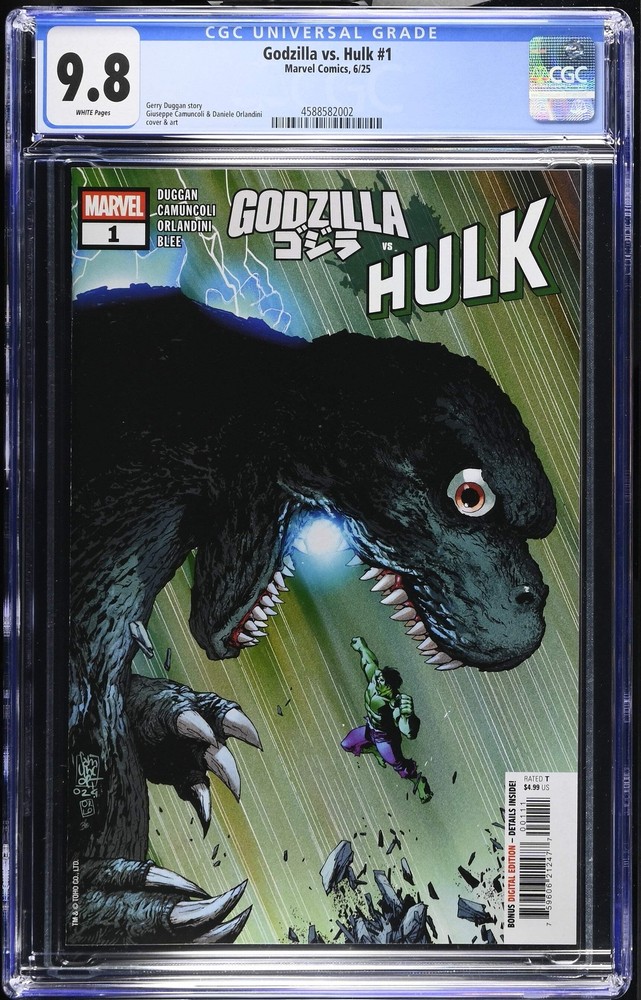 GODZILLA VS. HULK #1 - CGC 9.8 Release Dates and Shipping Timelines Pre-Order Items:The release date listed in the product title is the estimated release date. Items are expected to ship during the week of release. Exclusive Items:Exclusive products will ship approximately 2–4 weeks after the official release date. Graded Books:Pre-ordered graded books will ship within 30–90 days following the release date. Important Notes: Estimated shipping dates and cover art are subject to change. Items may ship earlier or later than anticipated without prior notice. All sales are final. Packaging Standards Comic Books: Shipped bagged and boarded, securely packaged in a Gemini mailer for maximum protection. Graded Books: Shipped in a protective bag, bubble-wrapped, and secured in a sturdy box or double-priority box to ensure safe delivery. Shipping Information Flat Rate Shipping:A flat rate of $4.99 applies to all U.S. orders. Combined Shipping: Items in your cart should automatically combine, except in cases involving accepted offers. For orders containing both pre-sale and in-stock items, or if auto-combination fails, please include a note or message us to request combined shipping. If no instructions are provided, we will assume separate shipments are preferred Mixed Order Shipping Policy Orders containing both pre-sale and in-stock items will be marked as shipped but will not be dispatched until all items in the order are released. Shipping from Multiple Locations Please note that some items in your order might be shipped from different locations. As a result, they may arrive separately. You will receive individual tracking numbers for each shipment to keep you updated on the status of your order. Order Cutoff Deadlines Final Order Cutoffs (FOC):Orders must be placed by Fridays at 5 PM EST to meet the cutoff for the week. Additional Considerations Items may be marked as shipped for the following reasons: Delays from the publisher. Damage upon arrival to our facility. Expiration of the eBay estimated shipping timeline. While we strive to select the highest-grade copies for our customers, pre-orders are guaranteed to arrive in a condition of 9.2 or higher. Customer Support Order Inquiries:If you believe your item should have arrived but hasn’t, please contact us before opening a dispute, and we will address the matter promptly. Issue Resolution:If you encounter any issues with your order, please reach out to us directly before leaving feedback. Our team is committed to resolving concerns to your satisfaction. Thank you for choosing 412 Comics! We appreciate your business and look forward to serving you again. GODZILLA VS. HULK #1 - CGC 9.8 Release Dates and Shipping Timelines Pre-Order Items: The release date listed in the product title is the estimated release date. Items are expected to ship during the week of release. Exclusive Items: Exclusive products will ship approximately 2–4 weeks after the official release date. Graded Books: Pre-ordered graded books will ship within 30–90 days following the release date. Important Notes: Estimated shipping dates and cover art are subject to change. Items may ship earlier or later than anticipated without prior notice. All sales are final. Packaging Standards Comic Books: Shipped bagged and boarded, securely packaged in a Gemini mailer for maximum protection. Graded Books: Shipped in a protective bag, bubble-wrapped, and secured in a sturdy box or double-priority box to ensure safe delivery. Shipping Information Flat Rate Shipping: A flat rate of $4.99 applies to all U.S. orders. Combined Shipping: Items in your cart should automatically combine, except in cases involving accepted offers. For orders containing both pre-sale and in-stock items, or if auto-combination fails, please include a note or message us to request combined shipping. If no instructions are provided, we will assume separate shipments are preferred Mixed Order Shipping Policy Orders containing both pre-sale and in-stock items will be marked as shipped but will not be dispatched until all items in the order are released. Shipping from Multiple Locations Please note that some items in your order might be shipped from different locations. As a result, they may arrive separately. You will receive individual tracking numbers for each shipment to keep you updated on the status of your order. Order Cutoff Deadlines Final Order Cutoffs (FOC): Orders must be placed by Fridays at 5 PM EST to meet the cutoff for the week. Additional Considerations Items may be marked as shipped for the following reasons: Delays from the publisher. Damage upon arrival to our facility. Expiration of the eBay estimated shipping timeline. While we strive to select the highest-grade copies for our customers, pre-orders are guaranteed to arrive in a condition of 9.2 or higher . Customer Support Order Inquiries: If you believe your item should have arrived but hasn’t, please contact us before opening a dispute , and we will address the matter promptly. Issue Resolution: If you encounter any issues with your order, please reach out to us directly before leaving feedback . Our team is committed to resolving concerns to your satisfaction. Thank you for choosing 412 Comics ! We appreciate your business and look forward to serving you again. × × × Buy now and save! Shipping info Click the Shipping & Payments tab above the listing description for more info Click the Shipping & Payments tab above the listing description for more info! Additional delivery notes PICK UP OPTION Sorry, our items are NOT available for pick-up. PAYMENT Immediate payment is required upon selecting "Buy It Now" or upon checking out through the cart. We accept payment via U.S. PayPal accounts and all Major Credit Cards, Debit Cards & Google Pay. We are legally required to collect sales tax in those states and localities where we maintain a physical presence (nexus). The applicable amount of sales tax charged to an order will be calculated