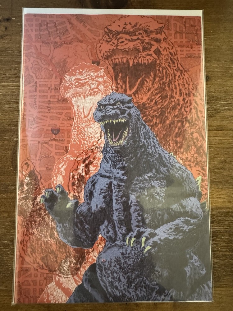The product is a highly collectible variant cover comic book titled "Godzilla vs America (Los Angeles) #1" published by IDW Publishing in 2025. This single issue features the iconic character Godzilla in a modern age action-adventure storyline. With a 1:50 rarity, this color comic book is a must-have for fans of both Godzilla and US Comics, making it a valuable addition to any collector's library.