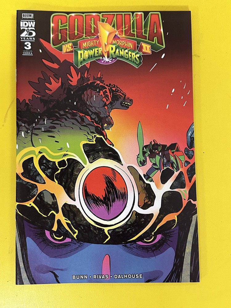 Get ready for an epic battle between Godzilla and the Mighty Morphin Power Rangers in this highly anticipated comic book series. This single issue, cover variant A, is a must-have for fans of both superheroes and US comics. The color style and boarded features make this comic book a true collector's item. Written by Cullen Bunn, this comic book features Godzilla and the Mighty Morphin Power Rangers in an exciting adventure. This modern age (1992-now) comic book is perfect for a general audience and is published by IDW Publishing. Don't miss out on the chance to add this comic book to your collection.