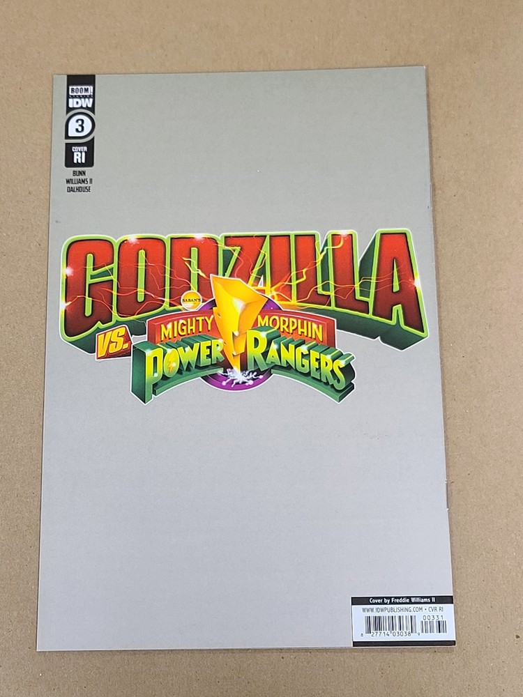 GODZILLA VS MMPR #3 COVER C 1:10 WILLIAMS II VARIANT IDW PUBLISHING 9.6 Idw publishing (W) Cullen Bunn (A) Freddie Williams II (CA) From IDW Publishing and Boom! Studios, two titanic powers collide in an intercompany crossover event you never expected... but one that makes complete sense! Everyone reading this series is expecting a team-up, and here it is! Only, this might not be what they had in mind! What's worse than a villainous monster from the Godzilla universe? Villainous monsters from the Godzilla and Mighty Morphin Power Rangers universes! And they're joining forces to destroy the Power Rangers! Written by superstar scribe Cullen Bunn (Godzilla: Cataclysm) and illustrated by artist extraordinaire Freddie Williams II (Batman/TMNT)! Item is 9.6 Image may be a stock image provided by the publisher if it is not an actual photo. You are purchasing the item listed as it is listed in the title. Covers are not virgin or sketch unless explicitly listed as such in the title. Fixed Price Standard Size Single Issue Comic Books are bagged and boarded. Auction Item Standard Size Single Issue Comic Books are bagged and boarded if they exceed $2.98. You can purchase bags and boards in quantities of 3 by searching our store for "bags and boards". We will combine shipping on multiple purchases. For shipments within the United States, we charge a flat $5.99 for up to 40 items on one invoice. International Shipping is offered through eBays Global Shipping Program. eBay does not allow us to change or even send international invoices. They handle that direclty. If you have further questions about international shipping please contact eBays Global Shipping Program.