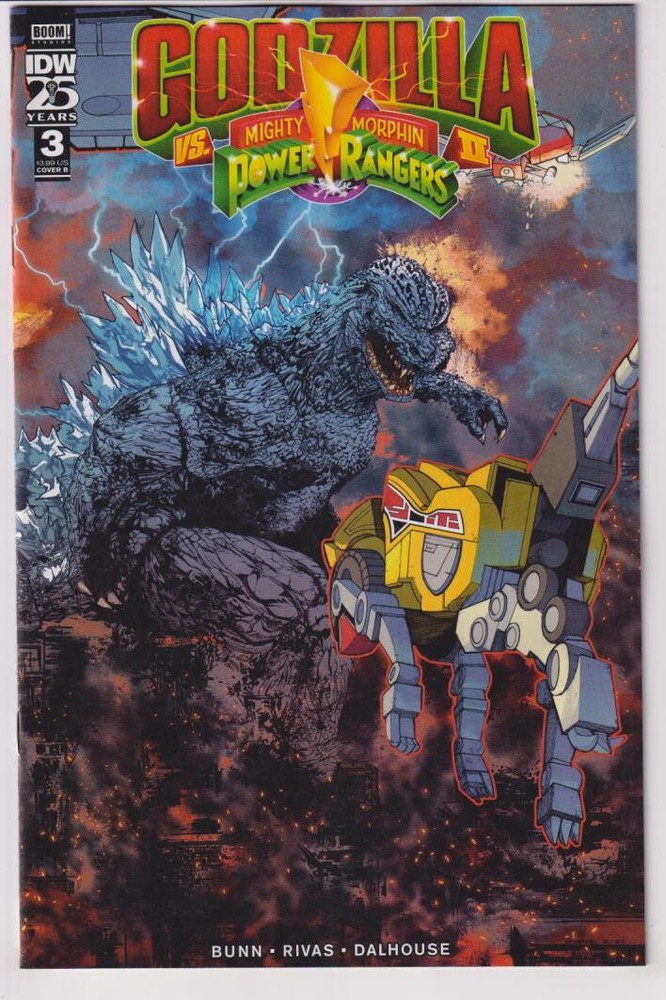 GODZILLA VS MMPR II #3 CVR B SANCHEZ IDW-PRH (W) Cullen Bunn (A) Baldemar Rivas (CA) Alex Sanchez The terrifying Psycho Rangers have siphoned the energies of some of Godzilla's greatestFoes, giving rise to the Kaiju Psycho Rangers! Even with Jet Jaguar and Mothra by their side,Godzilla and the Power Rangers might not stand a chance! But Zordon and the fairies have onelast magical trick to play... one that creates the most unexpected group of Power Rangers of all time! ----------------------------------------------------- Save on shipping by combining extra comics in the cart prior to checkout!!! We do not promise any specific grade or condition. View the scans provided carefully on as large a monitor as possible and if you need more information to decide stop by the store. Not shipping to Canada or other international locations. VA Shipping Destinations and local pick-up will have VA Sales Tax at 5.5% added. Priority Mail shipping is NOT a guaranteed service for shipping time. Most are fast but occasionally one can take weeks to arrive. This is not something we have any control over.