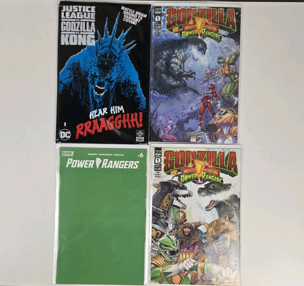 GODZILLA VS POWER RANGERS MIXED COMIC LOT OF 3 W GODZILLA VS KING KONG VS JUSTICE LEAGUE (SEALED) ** ONLY JUSTICE LEAGUE VS GODZILLA VS KING KONG IS SEALED** ** ( PLEASE SEE PICS CLOSELY ) ** ANY DAMAGE WILL BE SHOWN IN PICS, IF I MISS SOMETHING PLEASE BE PATIENT. FEEL FREE TO ASK FOR MORE PICS BUT GIVE ME SOME TIME TO PROVIDE THEM. **