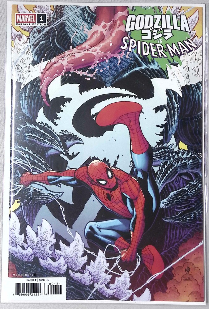 Don't miss out on this amazing series from the folks over at Marvel Comics - Godzilla Vs. Spider-Man. This is the Nick Bradshaw Variant Cover for issue #1 in the standard finish. The book will be ship...