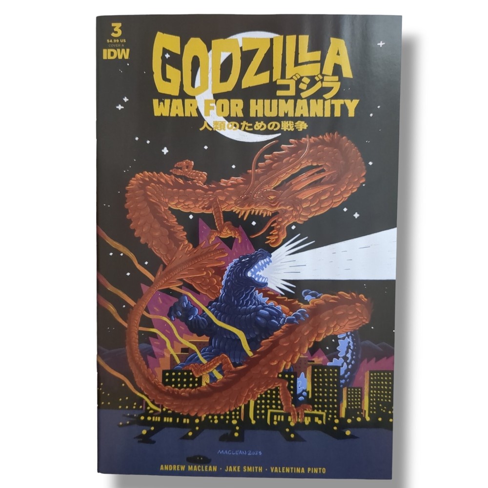 GODZILLA: WAR FOR HUMANITY #3 - ANDREW MACLEAN - REGULAR (2023) As a trio of kaiju attacks Tokyo, Zoospora's influence continues to spread beneath the surface, like an unseen, growing infection. Dr. Honda and her team hatch a desperate plan to rally Godzilla to humanity's cause, using the robotic MOGUERA. But how far are they willing to go? And as more kaiju appear and the situation gets even worse, what secrets are to be found in the 'Barry Pile'?! Zoospora goes viral as the epic introduction of a captivating new addition to Godzilla's rogues' gallery continues. Safely shipping your purchase is our priority! - All comics come bagged and boarded. - Orders are shipped in a Gemini Flash Mailer with additional cardboard for protection. - Comics will be at least 9.2 - 9.4 if not better. Grading can be subjective this is why we do not promise higher grades on raw books. As collectors ourselves we will make sure we ship the best quality comics possible. - We combine shipping just add to the cart! I cannot combine presale and items that are currently available unless you contact us before purchase. - We aim to please! Feel free to reach out with any additional questions or requests!
