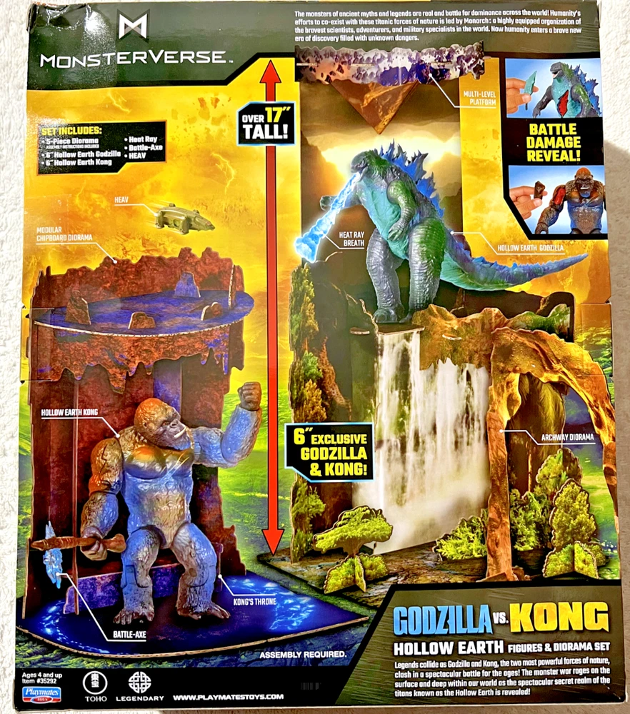 PLEASE READ - ****PLEASE UNDERSTAND IF YOU COMMIT TO PURCHASE THIS ITEM YOU WILL BE EXPECTED TO FOLLOW THROUGH WITH THE SALE. THERE WILL BE NO CANCELLATIONS ONCE THE ITEM HAS BEEN PURCHASED UNDER ANY CIRCUMSTANCES.A NON PAYING BIDDER WILL BE FILED WITH EBAY ON ALL UNPAID ITEMS.THANKS FOR YOUR UNDERSTANDING**** You are bidding on a GODZILLA vs KONG HOLLOW EARTH FIGURES & DIORAMA SET . Includes 5 piece multi-level Diorama Set. Over 17" tall. Includes Exclusive Godzilla & Kong 6" Figures This item is brand new never opened or played with and ready for shipping. The box has some dents and minor creasing. Package will be shipped USPS Ground Advantage mail. ***PLEASE NOTE*** International Buyers- Import duties,taxes,and charges are not included in the item price or shipping cost.These charges are the buyers responsibility. Please check with your country's customs office to determine what these additional costs will be prior to bidding or buying. TERMS & CONDITION: Serious buyers ONLY. Failure to completely adhere to 100% of the seller's Terms & Conditions will result in Delayed Shipment and/or Transaction Cancellation. By selecting 'Buy It Now' -or- Submitting a Bid, the buyer is entering into a legally enforceable contract to purchase the items described within. By selecting 'Buy It Now' -or- Submitting a Bid, the buyer acknowledges that they understand and agree to the seller's Terms & Conditions. PAYMENT We only accept Paypal payments for eBay transactions . eCheck payments will result in a 3-5 day shipping delay while funds clear through Paypal. We do not accept alternate forms of payment, i.e. Cash, Check, M.O., etc. SHIPPING & HANDLING: Please note that Delivery Dates provided by eBay & the Shipping Carrier for Standard, Expedited & Overnight Shipping are only ESTIMATES, and are subject to variability. Once an item is dropped off with the Shipping Carrier, we are unable to control the speed of delivery, thus we cannot guarantee that a package will arrive on an exact date. Shipping estimates are best estimated using the guidelines provided below, as they are generated based on analysis of our extensive selling history. For Shipping Purposes, Business Days are Monday-Friday 9am-3pm (Central Time), No shipments on Weekends & Holidays. After checkout is complete, we will process the order, securely package the item(s), and drop off the package(s) with the Shipping Carrier usually within 1 business day. . FEEDBACK We are committed to providing an easy, efficient & worry-free shopping experience and ensuring 100% customer satisfaction. We will happily leave 5-Star Positive Feedback for our customers upon a successfully completed transaction. Please be sure to leave us 5-Star Positive Feedback once you receive the item! RETURNS & EXCHANGES MY CHILD ACCIDENTALLY BOUGHT THIS ITEM IS NOT AN EXCUSE NEVER, EVER. 20% RESTOCKING FEE ON ALL CANCELLATIONS AND RETURNS NO EXCEPTIONS! Please be sure to inspect your items immediately upon receipt, and contact us immediately if there is a problem with the order. If the item is unopened, or does not meet the details, as laid out within the Item Description, then Returns & Exchanges are available within 30 calendar days from the date the item is recorded as 'Delivered'. FREE! Sellers: Add a FREE map to your listings. FREE!