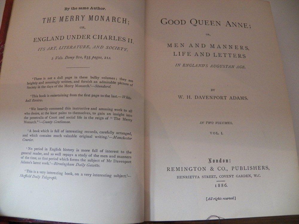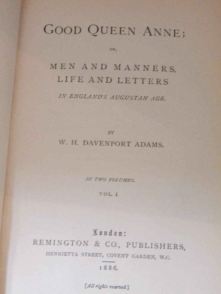 GOOD QUEEN ANNE OR MEN & MANNERS, LIFE & LETTERS IN 2 VOLUMES WITH 1/4 LEATHER BINDING PLUS CORNERS THESE ARE IN NICE CONDITION FOR THEIR AGE, JUST A FEW RUBS AND BUMPS ON THE LEATHER EDGES. 1886. THERE IS A PERSONALIZED BOOK PLATE INSIDE VOLUME I Dimensions: 9" X 6" Please email early with questions.