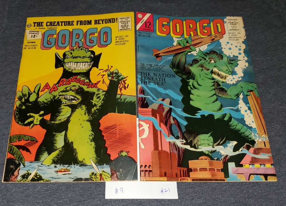 ~ Quality eBay items since 1999 ~ GORGO #9 Fn+ from 1962 & #21 VF- Charlton comics like Godzilla but not... All pages have been counted - comics are complete. See detailed pics of the exact comics you are buying (these are NOT stock photos) Shipping is $6.00 with combined shipping available of only $.50 for each additional single comic or small lot. Add all to Cart and pay at once for this discount.