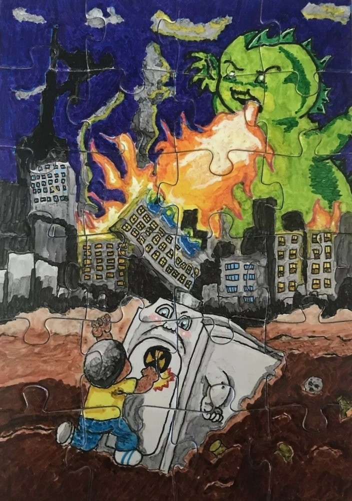 ONE (1) HAND DRAWN & PAINTED SKETCH PUZZLE (24 pieces total): ONE-OF-A-KIND COLLECTIBLE -- VERY RARE!! CHARACTER: Fryin' Ryan PUZZLE #1 OF 1 ***The storage tin is also hand painted (see pictures).*** TV MOVIE GARBAGE PAIL KIDS GODZILLA PARODY GARBAGE KIDS NON-SPORTS FILM COLLECTIBLE CARD RARE Hard to find!! Garbage Pail Kids are also known as Les Crados, Sgorbions, Gang do lixo, Basuritas, La Pandilla basura, Garbage Gang, Garbage Pail Kids, Die total Kaputten Kids, and Bukimi Kun.