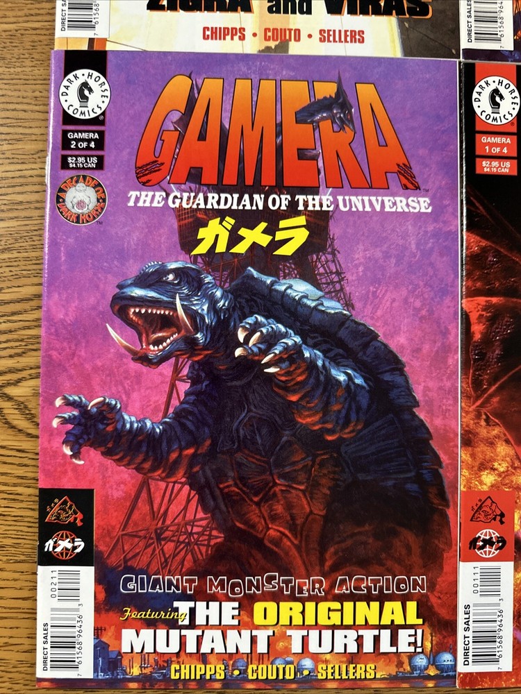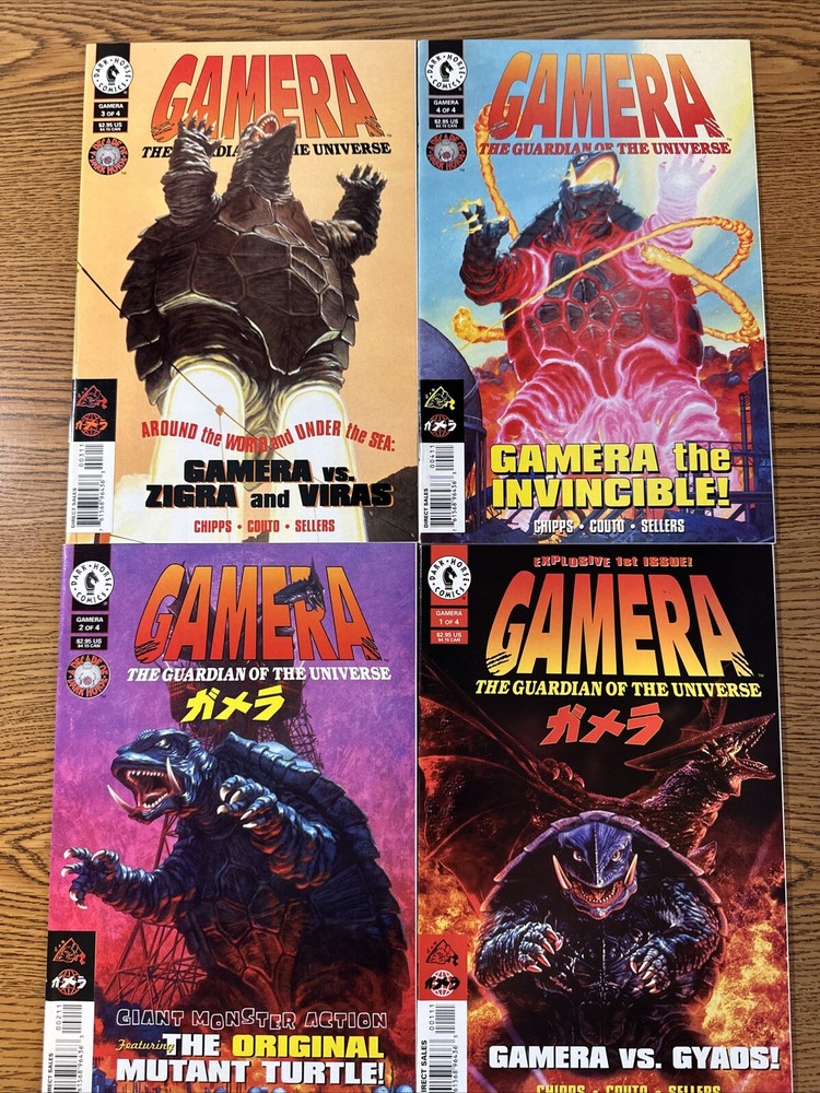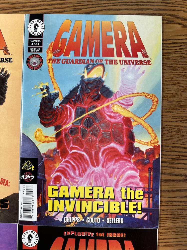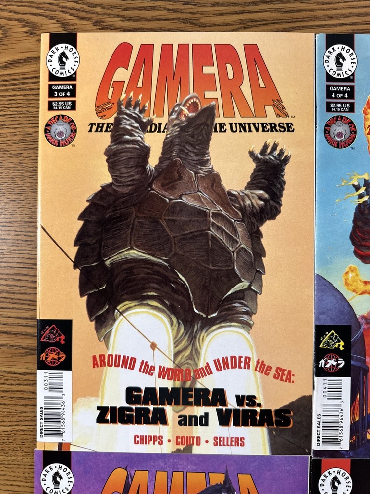 Welcome to ChillcomicsLLC I’ll be adding new comics every week. Save me as a seller or follow me on IG to see what’s coming soon. Lots of great stuff will listed soon. Follow me on IG: Chillcomics_llc Shipping rates and combine shipping I will never ship comics with media mail. I know that means more expensive shipping costs, but I want to follow USPS rules. Comics are prohibited to be shipped with media mail. I don’t make any money on shipping. In fact, after the Gemini mailer, bubble wrap and cost, I end up losing a few cents. What you pay, is what it costs me to ship. 1-2 comics will be shipped Ground advantage in a Gemini mailer for $6.00 3-10 comics will be shipped in a gemini mailer USPS ground advantage for $7.75 11-20 comics will be shipped priority mail for $12 21+ comics will be calculated. Please wait to be invoiced for combined shipping, before you pay. My Grading is an estimate. All Comics are complete and unrestored to the best of my knowledge. Please look at the photos. If you have questions or would like to see more photos, feel free to reach out. Up for sale… Gamera Guardian Of The Universe #1 2 3 4 Set Lot 1996 Dark Horse Comics Godzilla