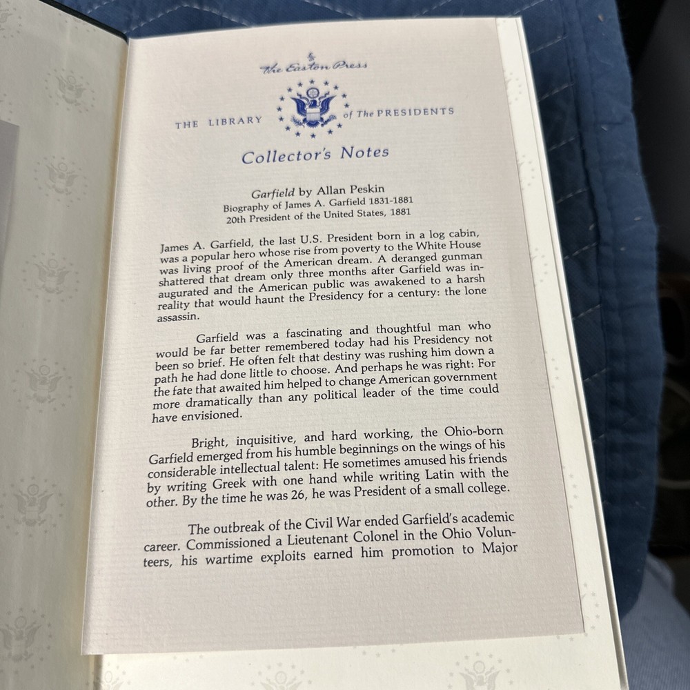 This beautifully crafted book is a must-have for any book collector. It features a leather cover with gilt detailing, making it a stunning addition to any bookshelf. The book, titled "Garfield A Biography," is part of the Library of the Presidents series and was written by Allan Peskin in 1987. The book is in English and is a nonfiction narrative type. It was published by Eason Press and is sure to provide an insightful and entertaining read. Get your hands on this rare gem today and add it to your collection!