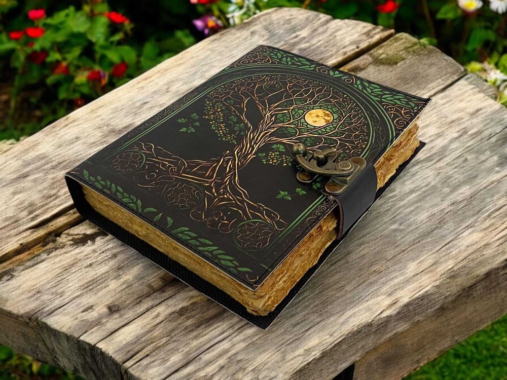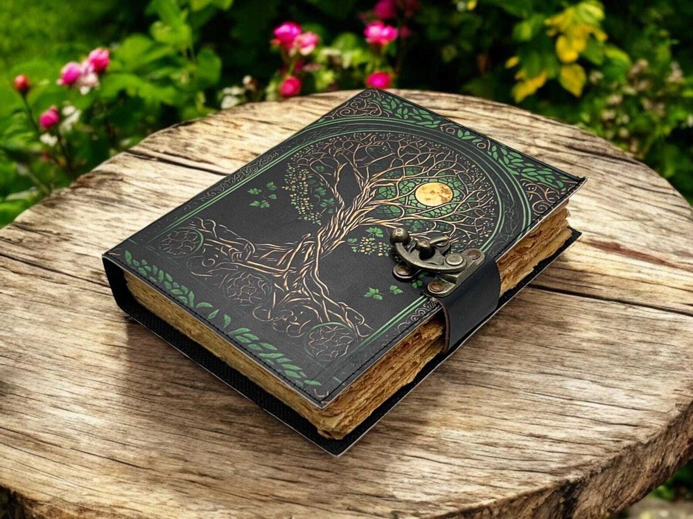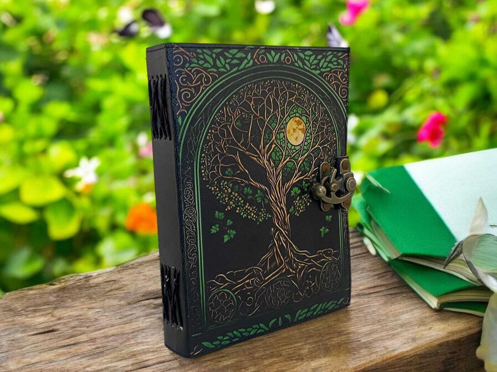Large Grimoire leather journal, Print tree of life Journal, Blank spell book book of shadows Leather Celestial Gifts For Him Her • Print - tree of life • Vintage lock closure • Genuine buffalo leather • Vintage deckle edge old paper • handmade rustic cotton paper • Size - 7x5 inches 8x6 inches 10x7 inches ● Artist Sketchbooks, Photo Album, Traveling Notes, Business Executive, Logbook, Poetry Work, Journalists, Food Planner, Instagram Scrapbook and Bible Journaling. ● Sketch, Doodle, Write on your Leather Blank Spell Journal with a Calligraphy Pen Fountain Pen, Brush Pen, Ball Pen, Acrylic Colors, Watercolor and many more. We guarantee no bleed through. ● The vintage clasp lock will keep all your valuable writing locked inside. Sturdy hand stitched binding to make sure that no paper comes out loose from your spell notebook. Leather notebook, leather journal, leather grimoire, book of shadows, gift for him, gift for her, gift for boyfriend, gift for girlfriend, gift for mother, wiccan, pagan, recipe notebook, travel notebook, wedding guest book.