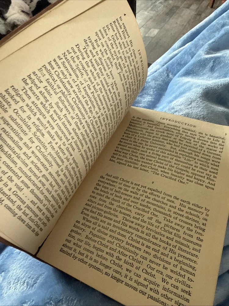 This vintage copy of Giovanni Papini's "Life of Christ" from 1923 is a must-have for any collector of antiquarian books. The leather binding adds to its charm and durability. Papini's vivid writing style brings the story of Jesus to life in a way that few others have. This edition is perfect for anyone interested in religious history or vintage books. In good shape for its age