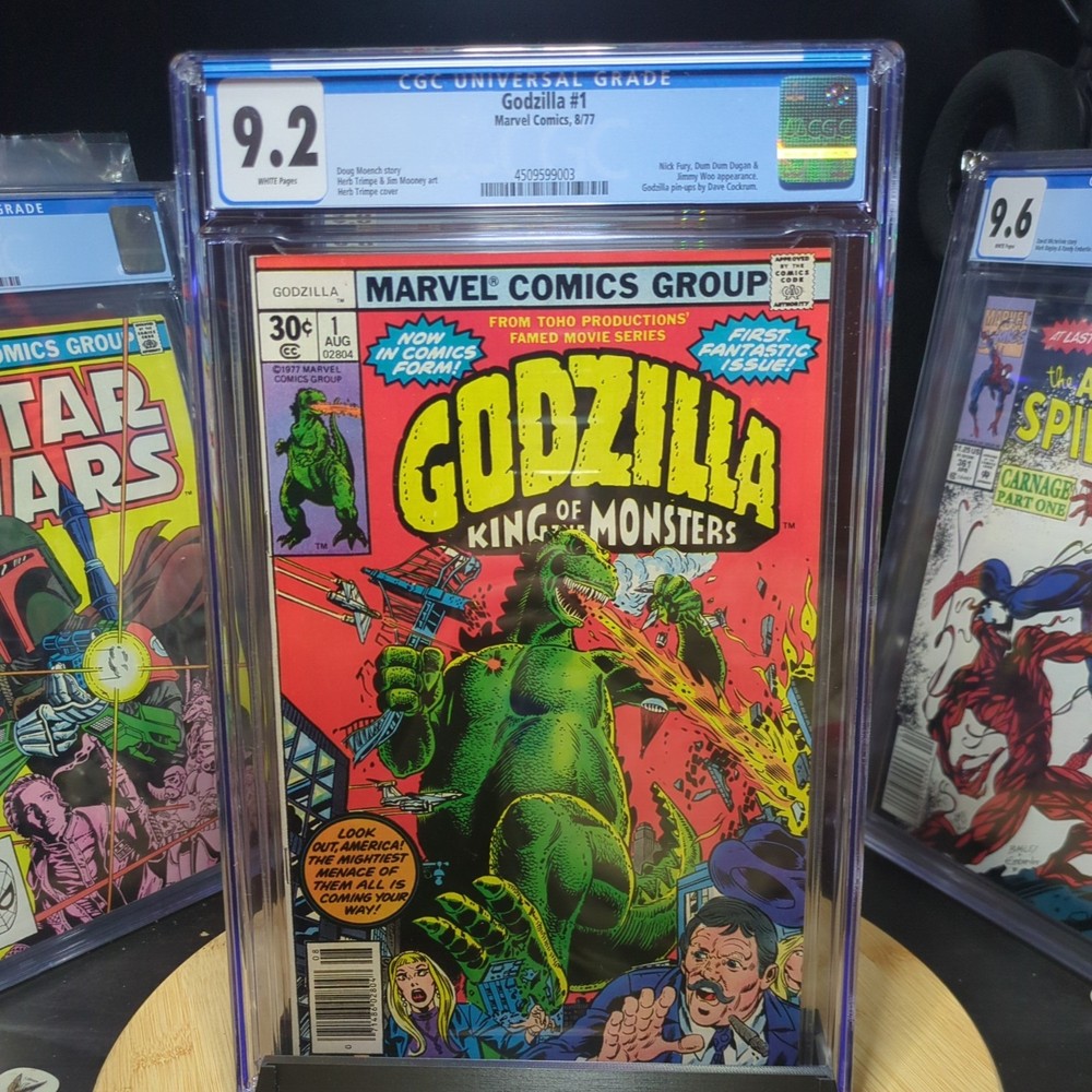 Marvel Comics Godzilla #1, a must-have for enthusiasts and collectors alike. This graded comic book boasts an impressive 9.2 rating, promising a superb addition to your collection. Featuring the legendary monster that reshaped the face of horror, this issue encapsulates a genre-defining era of US comics.