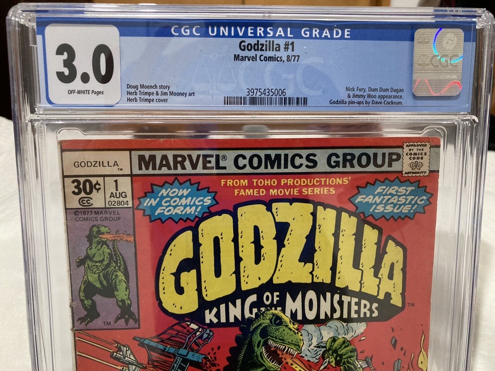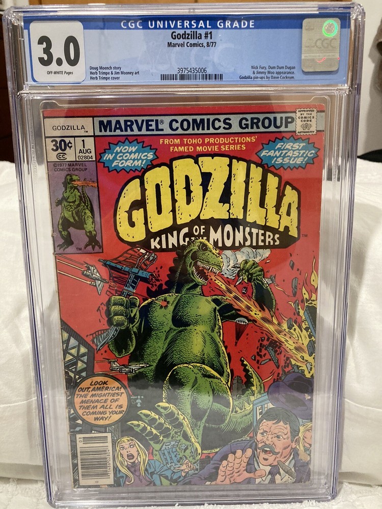 You are looking at a rare and highly sought-after comic book series: Godzilla #1 (August 1977, Marvel Comics) Rare, CGC Graded (3.5). This is the first issue of the Godzilla series, another comic book adaptation of one of the most beloved characters in film history. This comic book is in fair condition, with off-white white pages and some moderate wear. The CGC case is intact and has no cracks or scratches. The CGC certification number is 3975435006. You can verify the authenticity of this comic book by visiting the CGC website and entering the certification numbers. This series is a must-have for any fan of Godzilla or Godzilla comics. It is a classic piece of comic book history that showcases the amazing art and storytelling depicting the timeless monster. Don’t miss this opportunity to own Godzilla #1 (August 1977, Marvel Comics) Graded 3.5 by CGC . This comic book is rare and hard to find in such grade. It will be shipped securely to ensure its safe arrival. Bid with confidence and add these gems to your collection today!