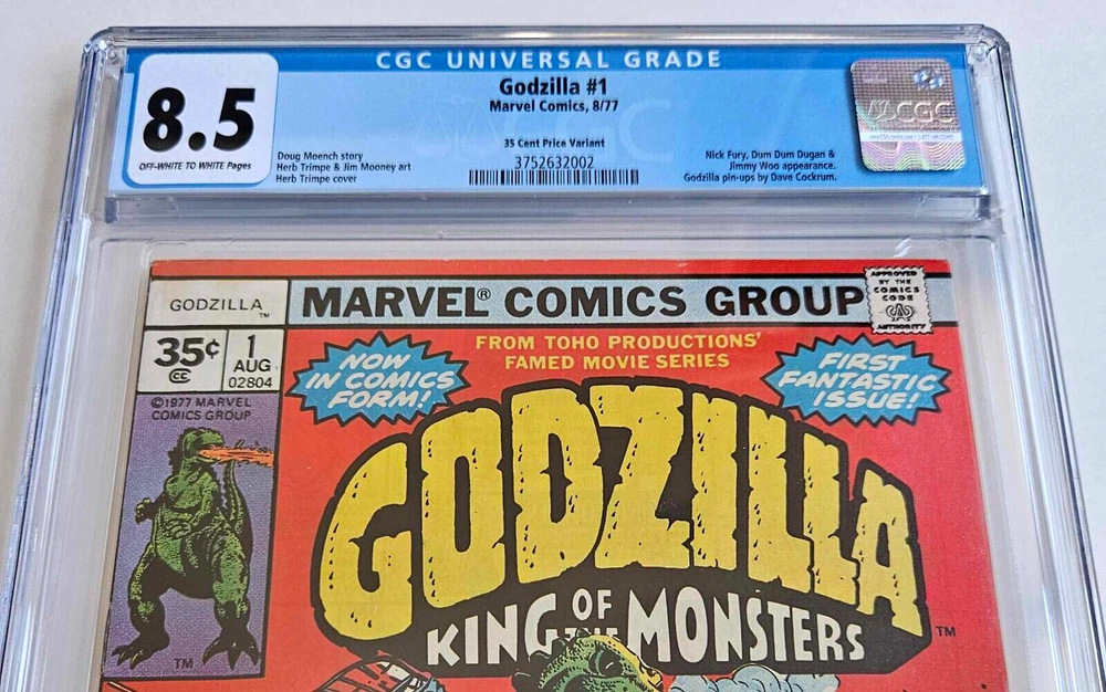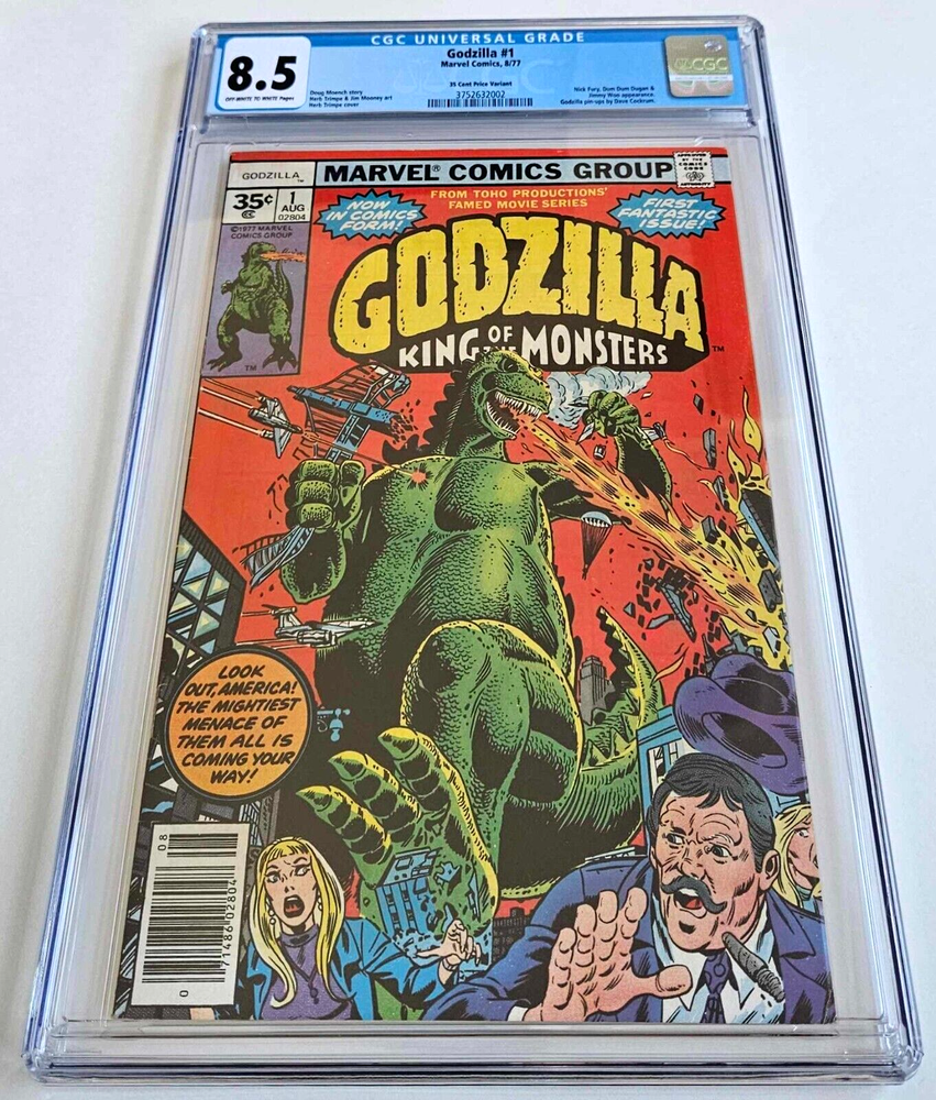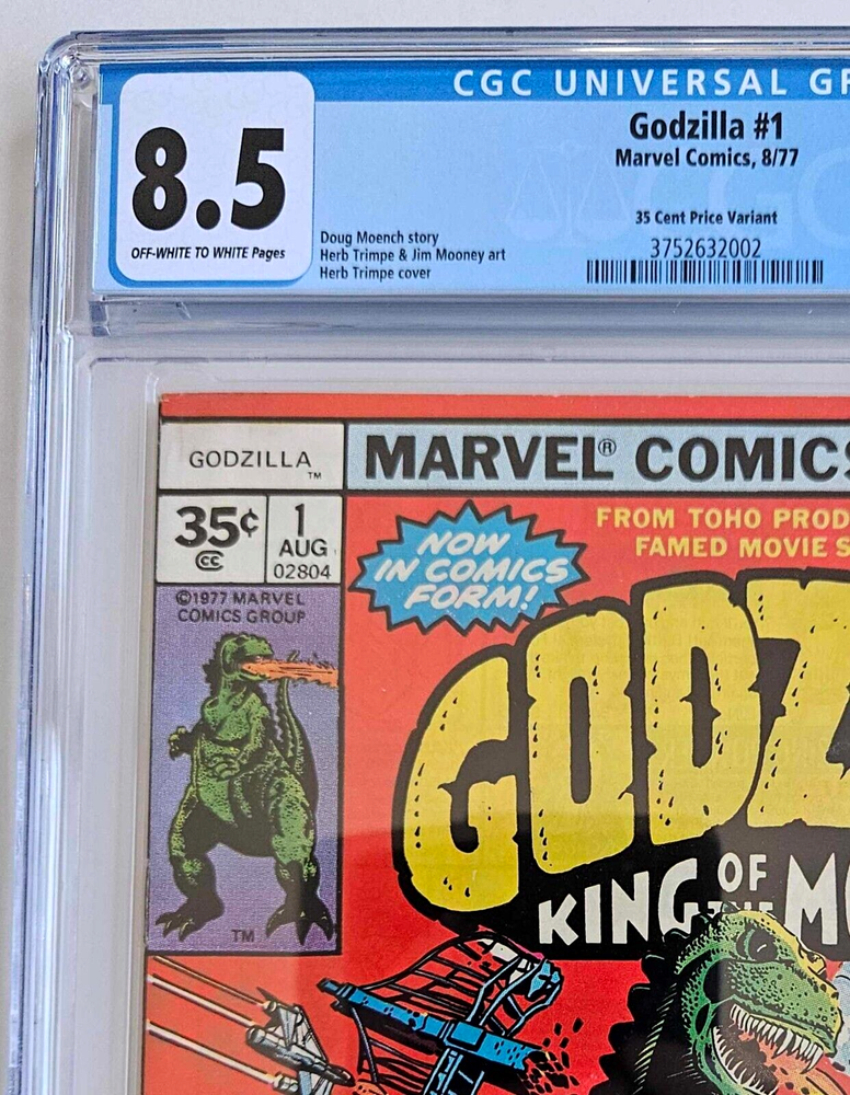 Godzilla #1 CGC 8.5 OW-WP. 35 Cent Price Variant. Marvel Comics 1977. YOUR CHANCE TO OWN THE HOLY GRAIL OF GODZILLA COMIC BOOK COLLECTIBLES The one and only, in sanely rare Issue #1 .35 Cent Price Variant! History and Information Only approximately 10,000 of the .35 cent variant cover were ever printed and only distributed in one select region of the United States when released in 1977 - making this a rare find even at the time almost 50 years ago. In 1977, Marvel Comics cost .30 cents and this price variant, among a few others, were released as a way to gauge customer response to the upcoming price increase to .35 cents. Godzilla issues #1-3 were included in the test market, then issue #4 and onward were sold only with the updated .35 cent standard price. At almost 50 years old, this is the holy grail key issue of Godzilla comics for many reasons! It's also Godzilla's first-ever appearance in Marvel, or any American comic book! Since then, Godzilla has returned for many appearances in Marvel, DC, and other Comic Distributors, and The King of the Monsters ever-growing fame and international recognition has only continued to skyrocket since the latest movie releases, Godzilla X Kong and Godzilla Minus One - making this the perfect piece for any collector, investor, or G-Fan! Population 7 Only 7 copies are recorded in the CGC Census for books with this grade, and only 23 books are known to exist in the whole world this grade or higher - Astonishingly rare! Pictures listed are of actual item. Case has no flaws. Godzilla Issue Number: 1 CGC Graded 8.5 Certification Number: 3752632002 35 Cent Price Variant Off-White to White Pages Publisher: Marvel Comics 1977 More CGC Graded Comics, Single Issues, and Other Collectibles Available NOW! Check out our other items ! <-Click Here! Please message us with any questions. Please make payment within 3 days of purchase. Orders are shipped within 3 days after payment is received. Expedited shipping available - Shipping rates will vary. International shipping available - Please send us a message before purchasing to calculate shipping costs - Shipping rates will vary. To purchase multiple items from our store: 1. Add the item you wish to buy to your cart. 2. Click on the shopping cart icon to access your cart. 3. Click on the Proceed to Checkout button. 4. To receive your discount for combined shipping, click the Request for Total button to request an adjusted invoice. Your shipping costs will be adjusted based on the items you are purchasing. If you have any questions about combined shipping costs, please send us a message. If you need assistance with completing your order, please contact eBay Customer Service for support at [phone removed by eBay]. Thank you for shopping at HeroesWorldComics!