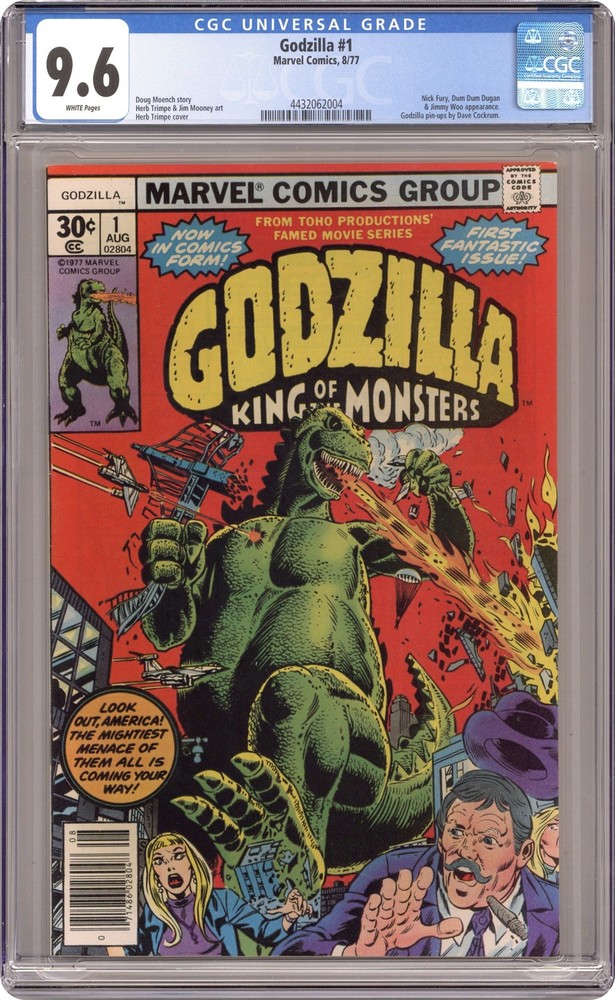 Menu Categories Featured Comics New Comics Comic Book Value Packs Key Comics & First Appearances Pre-Code Horror Comics Good Girl Art Comics Promotional Comics Comics Pre-1940 Comics 1940s Comics 1950s Comics 1960s Comics 1970s Comics 1980s Comics 1990s Comics 2000s Comics 2010-Curent Other Comics Graphic Novels, Books Fanzines Vintage Paperbacks Pulps and Digests Men's Adventure Non-comic Magazines Godzilla #1 CGC 9.6 1977 4432062004 Grade CGC 9.6 Page Quality White Year 1977 Publisher Marvel Any CGC case may have minor imperfections including Newton rings, scuffs, standard surface wear, or minor cracks. CGC considers these defects acceptable, as do we. If there is any significant damage to the slab it will be noted in our description, and we will not list any slabbed comics with a damaged case that compromises the integrity of the grade. Description "The Coming!" Guest-starring Nick Fury and S.H.I.E.L.D. Story by Doug Moench. Art by Herb Trimpe and Jim Mooney. The slumbering leviathan known as Godzilla has awaken and rises out of the sea off the shores of Alaska. This reptilian titan has already left Japan devastated and now has made his way to America. With a tail that can smash mountains to dust and fiery breath born out of the Atomic Age, is there anything that can stop this monster's rampage? Right from the Toho Productions' famed movie series comes Godzilla, King of the Monsters. This item is a consignment This item is a consignment, which means that the price has been set by the consignor rather than by MyComicShop. It is located at our headquarters and ships just as quickly as everything else we carry. Grading & Packing We take pride in our accurate, consistent grading. You can be confident in receiving a well-graded comic when ordering from us. We understand that condition is important to collectors. We pack your comics with professional care and high-quality packaging to insure your purchase reaches you safely. About Us We opened our first comic retail store in 1977 and operated a chain of eight comic book stores in the 80s, 90s, and 2000s before going online-only. We are the world's largest comic book seller and the biggest and most trusted comic seller on eBay with over 3.6 million comics sold. We Buy & Consign We buy tens of thousands of comics every month from collections large and small, old and new. We also accept consignments and will get your comics listed on eBay for you. Check out our website for more info. Copyright © 2025 MyComicShop & Lone Star Comics. All rights reserved.