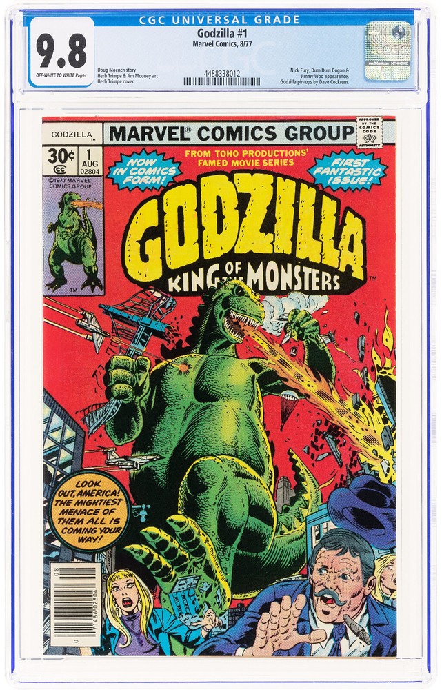 I have been selling high end CGC books on ebay for over 10 years now and have over 5,000 feedback. Why take a chance on buying valuable CGC books with other low feedback ebay sellers?? I sell Golden (Superman #1 and Batman #1), Silver (Amazing Fantasy #15), and Bronze age key book (Hulk #181)... so take a look into my ebay store and see what interests you! U p for auction is: Godzilla #1 CGC 9.8 Marvel 1977 Key Bronze! In King Kong Movie! Take a look at the large scan below..... Book is now almost 50 years old! Great Investment! CGC books like this are normally higher dollar items...Why take a chance with ebayers with under 1,000 feedback? I have been selling high end CGC books here on ebay for over 10 years and have over 5,000 feedback! ------------------------------------------------------------------------------------------------------------------------------- Paypal is available for this auction! Payment must be received within 24 hours from auction. US customers only. Shipping: I ship VERY securely in a STURDY box!