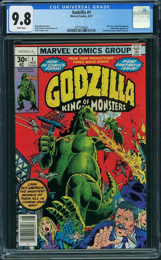 I have been selling high end CGC books on ebay for over 10 years now and have over 5,000 feedback. Why take a chance on buying valuable CGC books with other low feedback ebay sellers?? I sell Golden (Superman #1 and Batman #1), Silver (Amazing Fantasy #15), and Bronze age key book (Hulk #181)... so take a look into my ebay store and see what interests you! U p for auction is: Godzilla #1 CGC 9.8 Marvel 1977 Key Bronze! In King Kong Movie! White Pages! Take a look at the large scan below..... Book is now over 40 years old! Great Investment! CGC books like this are normally higher dollar items...Why take a chance with ebayers with under 1,000 feedback? I have been selling high end CGC books here on ebay for over 10 years and have over 5,000 feedback! ------------------------------------------------------------------------------------------------------------------------------- Paypal is available for this auction! Payment must be received within 24 hours from auction. US customers only. Shipping: I ship VERY securely in a STURDY box!
