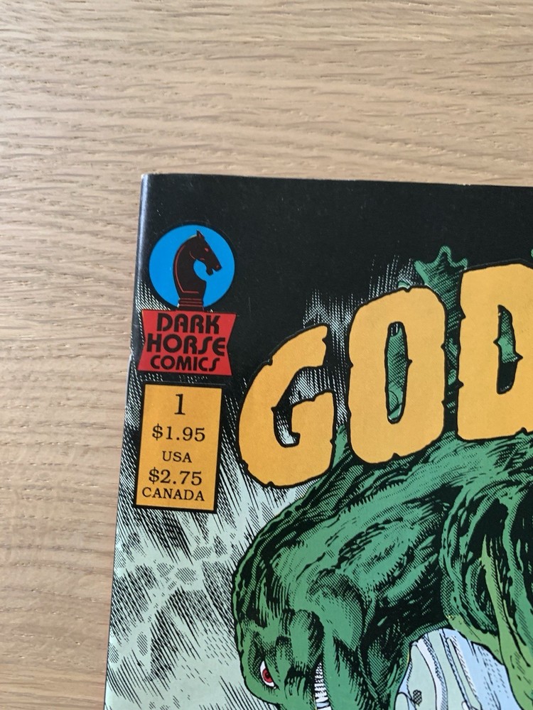 This is an incredible copy of Godzilla #1, published by Dark Horse Comics in May 1988. The comic features the iconic Godzilla character and is written in English. The issue number is 1, and it belongs to the Copper Age era (1984-1991) of US comics. The comic is a science fiction genre and is part of the Godzilla series title. The comic is beautifully illustrated, and the cover art by Mark A. Nelson is amazing. The comic belongs to the categories of collectibles, comic books & memorabilia, comics, and comics & graphic novels. This is a must-have for any fan of Godzilla or US comics.