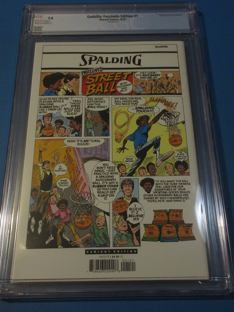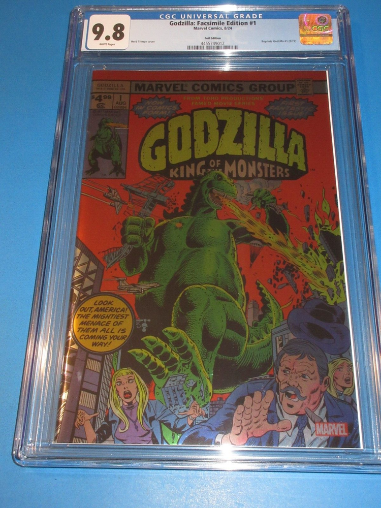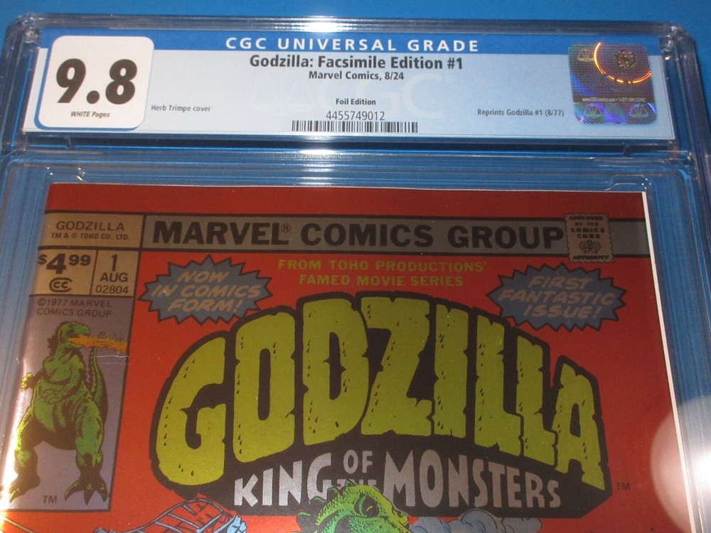 This auction is for Godzilla #1 reprint variant in CGC 9.8 with a new case condition. This week we are selling an incredible collection including Amazing Spider-man , Silver Surfer, Dr. Strange, X-men, Iron Man, Hulk, Fantastic Four, Black Panther, Batman, CGC books and many other 1st appearance key issues. You are sure to find something you are looking for this week. Bonus Offer! I will add a bonus comic book for every 10 auctions you pay for on the same invoice this week. Our Shipping rates are: USA: 5 dollar flat rate shipping with no limit, multiple comic lots have a charge and additional combined lots are half price. Canada: 16 Dollars for the 1st comic and 1.50 each after that. International: 18 dollars for the 1st comic and 1.50 each after that. CGC books are 11.99 flat rate in the USA, 24 bucks and 12 combined for Canada and 28 bucks and 14 combined for international. Feel free to ask questions. I guarantee superfast Domestic shipping! ...to open their eyes...that they may receive forgiveness of sins and a place among those who are sanctified by faith in me. Acts 26:18