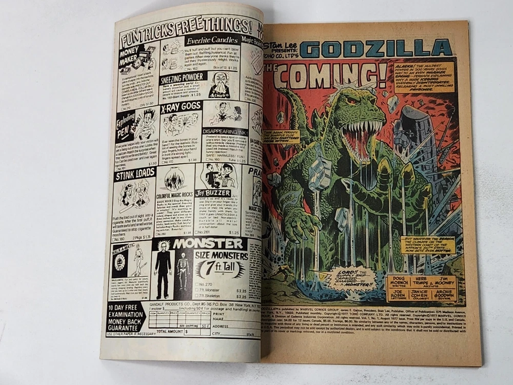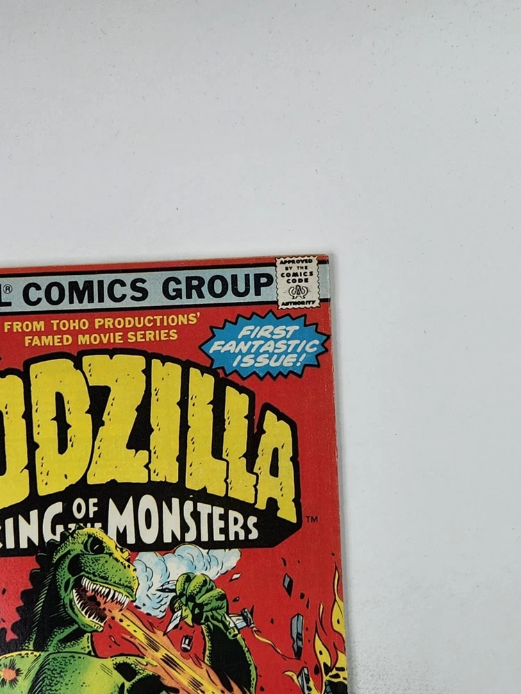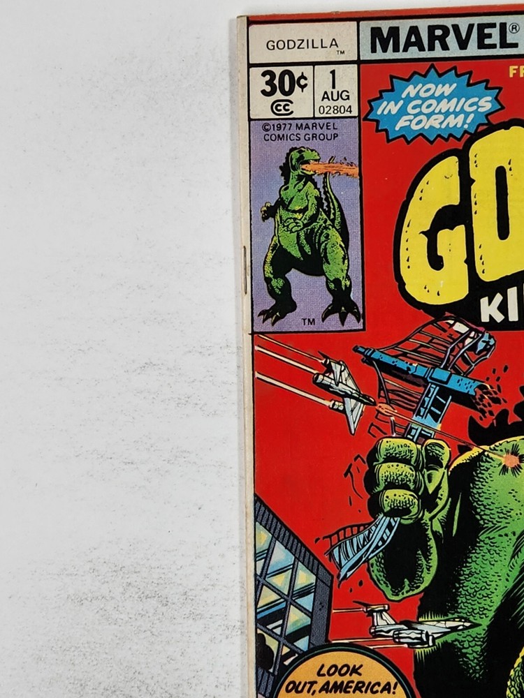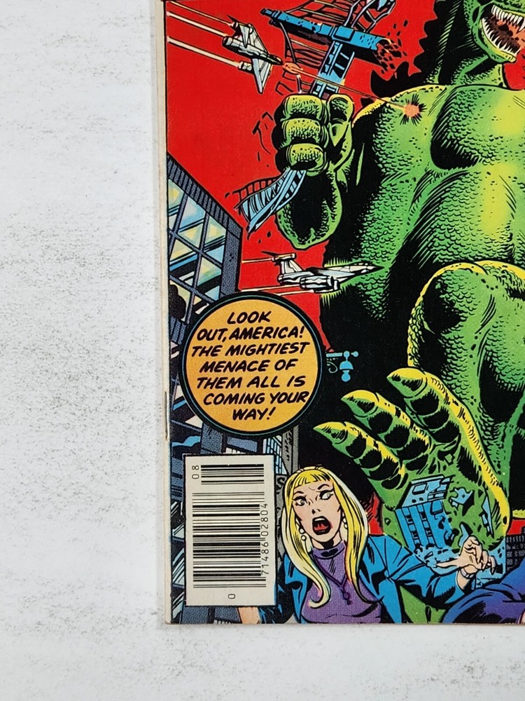 Godzilla 1 NEWSSTAND Marvel Comics 1st Ongoing Series in US Bronze Age 1977 Actual books for sale shown in photos (no stock images). All books ship bagged & boarded from a non-smoking home. Books will be mailed in a Gemini mailer via USPS. Slabs will be securely shipped in a medium priority mail box. Message me if you're interested in multiple listings to combine & save on shipping.