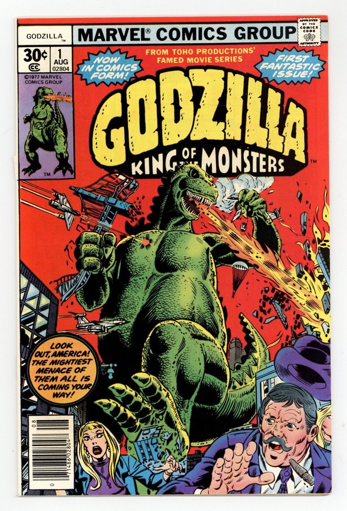 Menu Categories Featured Comics New Comics Comic Book Value Packs Key Comics & First Appearances Pre-Code Horror Comics Good Girl Art Comics Promotional Comics Comics Pre-1940 Comics 1940s Comics 1950s Comics 1960s Comics 1970s Comics 1980s Comics 1990s Comics 2000s Comics 2010-Curent Other Comics Graphic Novels, Books Fanzines Vintage Paperbacks Pulps and Digests Men's Adventure Non-comic Magazines Godzilla #1 VG- 3.5 1977 Grade VG- 3.5 Year 1977 Publisher Marvel Cover detached at one staple. This is a low grade item. It will be complete and readable, but will show significant wear. Allowed defects for this grade include: spine roll, a moderate amount of staining or water damage, writing or other marks on the cover, up to one inch spine splits or other tears, a cover or centerfold that is detached at one staple, discoloration due to oxidation, and a minor piece or pieces missing. An item could be assigned this grade due to either an accumulation of minor/moderate defects or one or two major defects. Description "The Coming!" Guest-starring Nick Fury and S.H.I.E.L.D. Story by Doug Moench. Art by Herb Trimpe and Jim Mooney. The slumbering leviathan known as Godzilla has awaken and rises out of the sea off the shores of Alaska. This reptilian titan has already left Japan devastated and now has made his way to America. With a tail that can smash mountains to dust and fiery breath born out of the Atomic Age, is there anything that can stop this monster's rampage? Right from the Toho Productions' famed movie series comes Godzilla, King of the Monsters. This item is a consignment This item is a consignment, which means that the price has been set by the consignor rather than by MyComicShop. It is located at our headquarters and ships just as quickly as everything else we carry. The grade and description for this item were assigned by MyComicShop's professional graders, not by the consignor. You can expect the same high quality, reliable grading on consignments that we provide on all other items we offer. Grading & Packing We take pride in our accurate, consistent grading. You can be confident in receiving a well-graded comic when ordering from us. We understand that condition is important to collectors. We pack your comics with professional care and high-quality packaging to insure your purchase reaches you safely. About Us We opened our first comic retail store in 1977 and operated a chain of eight comic book stores in the 80s, 90s, and 2000s before going online-only. We are the world's largest comic book seller and the biggest and most trusted comic seller on eBay with over 3.6 million comics sold. We Buy & Consign We buy tens of thousands of comics every month from collections large and small, old and new. We also accept consignments and will get your comics listed on eBay for you. Check out our website for more info. Copyright © 2025 MyComicShop & Lone Star Comics. All rights reserved.