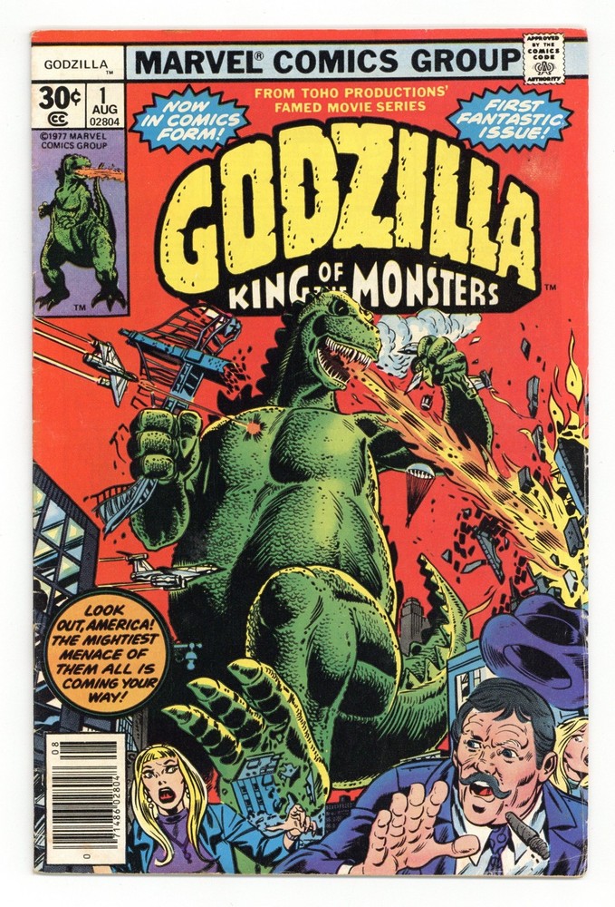 Menu Categories Featured Comics New Comics Comic Book Value Packs Key Comics & First Appearances Pre-Code Horror Comics Good Girl Art Comics Promotional Comics Comics Pre-1940 Comics 1940s Comics 1950s Comics 1960s Comics 1970s Comics 1980s Comics 1990s Comics 2000s Comics 2010-Curent Other Comics Graphic Novels, Books Fanzines Vintage Paperbacks Pulps and Digests Men's Adventure Non-comic Magazines Godzilla #1 VG 4.0 1977 Grade VG 4.0 Year 1977 Publisher Marvel Centerfold detached at one staple. This is a low grade item. It will be complete and readable, but will show significant wear. Allowed defects for this grade include: spine roll, a moderate amount of staining or water damage, writing or other marks on the cover, up to one inch spine splits or other tears, a cover or centerfold that is detached at one staple, discoloration due to oxidation, and a minor piece or pieces missing. An item could be assigned this grade due to either an accumulation of minor/moderate defects or one or two major defects. Description "The Coming!" Guest-starring Nick Fury and S.H.I.E.L.D. Story by Doug Moench. Art by Herb Trimpe and Jim Mooney. The slumbering leviathan known as Godzilla has awaken and rises out of the sea off the shores of Alaska. This reptilian titan has already left Japan devastated and now has made his way to America. With a tail that can smash mountains to dust and fiery breath born out of the Atomic Age, is there anything that can stop this monster's rampage? Right from the Toho Productions' famed movie series comes Godzilla, King of the Monsters. Grading & Packing We take pride in our accurate, consistent grading. You can be confident in receiving a well-graded comic when ordering from us. We understand that condition is important to collectors. We pack your comics with professional care and high-quality packaging to insure your purchase reaches you safely. About Us We opened our first comic retail store in 1977 and operated a chain of eight comic book stores in the 80s, 90s, and 2000s before going online-only. We are the world's largest comic book seller and the biggest and most trusted comic seller on eBay with over 3.6 million comics sold. We Buy & Consign We buy tens of thousands of comics every month from collections large and small, old and new. We also accept consignments and will get your comics listed on eBay for you. Check out our website for more info. Copyright © 2025 MyComicShop & Lone Star Comics. All rights reserved.