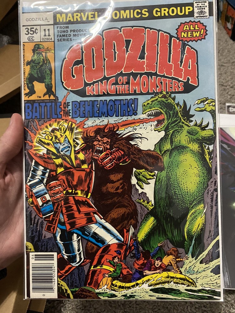 This is a copy of Godzilla #11, in Good condition has some spine ticks but colors pop! Staples are holding up! published by Marvel Comics in June 1978. It features an all-star creative team including Mary Titus, Herb Trimpe, Fred Kida, and Doug Moench. The issue showcases an exciting range of characters including Mary (Rafter), Jeff (Rafter), Gabe Jones, Godzilla, Robert Takiguchi, Ron (Rafter), Red Ronin, Jillian (Rafter), Hugh Howards, Yetrigar, and "Dum-Dum" Dugan. The cover art by Herb Trimpe and Ernie Chan is stunning and captures the essence of the science fiction genre. This comic book is a must-have for collectors and fans of US Comics, specifically those interested in the Bronze Age (1970-83).