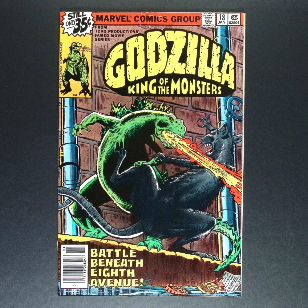 A nice, clean copy of Marvel Comics, Godzilla issue #18. This copy is somewhere in the FN+ (6.5) range. 2" scratch and 1/4" tear on top of front cover. Light spine wear on back. I will ship in a Gemini mailer within the USA only. Combined shipping available with other orders. As always, if you have any questions or need additional photos, please don't hesitate to ask. Thank you!