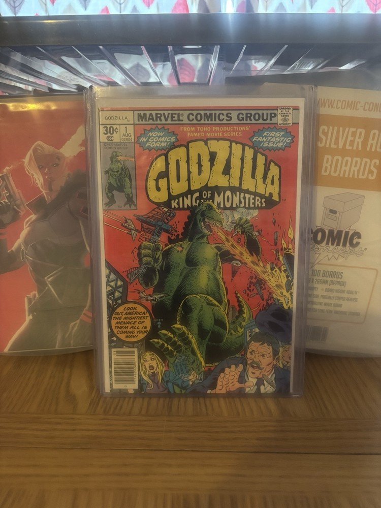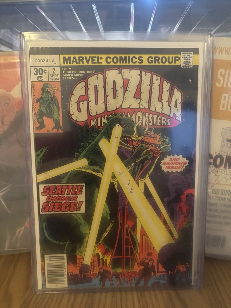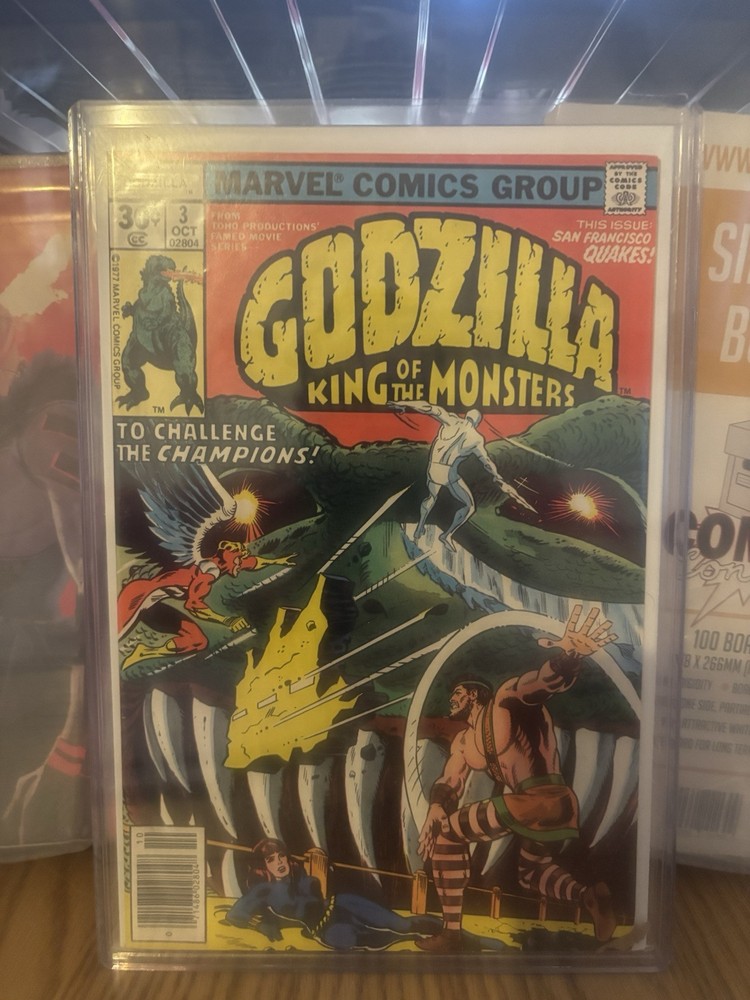Dive into the thrilling world of monster mayhem with the 'Godzilla 1977 Issues 1-3', a must-have for fans and collectors alike. Brought to life by Marvel Comics, these comics feature the iconic beastliness of Godzilla in a gripping series titled 'The Coming!'. Herb Trimpe's vivid artwork sets the stage for an unforgettable reading experience, especially for those who cherish the Bronze Age of comics (1970-83). These English language, single-issue comics are steeped in the rich tradition of US comics and come as a 1st edition, boarded for added protection. Issue numbers 1, 2, and 3 take you on a journey through an action-packed narrative that has captivated audiences for decades. Perfect for enthusiasts of the Marvel (MCU) universe, these comics are a vintage treasure from 1977, proud to be part of any collection.