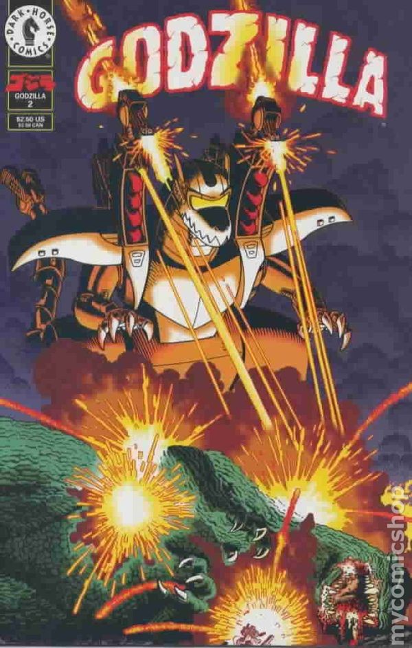Menu Categories Featured Comics New Comics Comic Book Value Packs Key Comics & First Appearances Pre-Code Horror Comics Good Girl Art Comics Promotional Comics Comics Pre-1940 Comics 1940s Comics 1950s Comics 1960s Comics 1970s Comics 1980s Comics 1990s Comics 2000s Comics 2010-Curent Other Comics Graphic Novels, Books Fanzines Vintage Paperbacks Pulps and Digests Men's Adventure Non-comic Magazines Godzilla #2 FN 1995 Stock Image Grade FN Year 1995 Publisher Dark Horse This is a mid grade item. It will have enough minor defects that it is in clearly worse condition than a brand new freshly published comic, magazine, or book. Allowed defects for this grade include: a spine split of less than half an inch, minor water spotting or other residue, impacted corners, and an accumulation or spine stresses that may break color. An item could be assigned this grade due to either an accumulation of minor defects or one or two moderate defects. Description Written by KEVIN MAGUIRE. Art by BRANDON McKINNEY & SCOTT REED. Cover by ART ADAMS. One big monster deserves another! To combat Godzilla, the scientific wizards of G-Force construct Cybersaur, their own giant tool of destruction! He takes to the skies with a single mission: Destroy the King of Monsters! Can technology defeat the ferocity of nature? The fate of America hangs in the balance! Stock image The image for this listing is a stock image provided to help you identify the item, but is not the specific item being offered, nor does it represent the grade or condition of the item you will receive. Please read the item description for any description of grade or condition. Grading & Packing We take pride in our accurate, consistent grading. You can be confident in receiving a well-graded comic when ordering from us. We understand that condition is important to collectors. We pack your comics with professional care and high-quality packaging to insure your purchase reaches you safely. About Us We opened our first comic retail store in 1977 and operated a chain of eight comic book stores in the 80s, 90s, and 2000s before going online-only. We are the world's largest comic book seller and the biggest and most trusted comic seller on eBay with over 3.6 million comics sold. We Buy & Consign We buy tens of thousands of comics every month from collections large and small, old and new. We also accept consignments and will get your comics listed on eBay for you. Check out our website for more info. Copyright © 2025 MyComicShop & Lone Star Comics. All rights reserved.