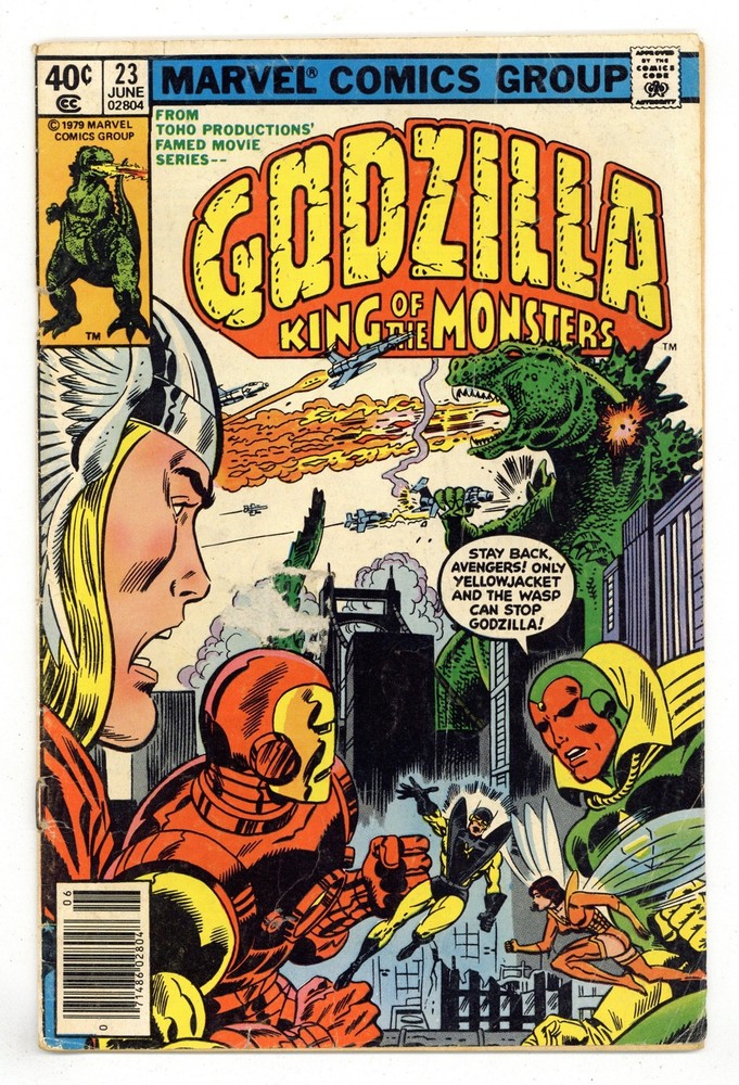 Menu Categories Featured Comics New Comics Comic Book Value Packs Key Comics & First Appearances Pre-Code Horror Comics Good Girl Art Comics Promotional Comics Comics Pre-1940 Comics 1940s Comics 1950s Comics 1960s Comics 1970s Comics 1980s Comics 1990s Comics 2000s Comics 2010-Curent Other Comics Graphic Novels, Books Fanzines Vintage Paperbacks Pulps and Digests Men's Adventure Non-comic Magazines Godzilla #23N GD/VG 3.0 1979 Grade GD/VG 3.0 Year 1979 Publisher Marvel Centerfold detached. Three wraps detached at one staple. This is a low grade item. It will be complete and readable, but will show significant wear. Allowed defects for this grade include: spine roll, a moderate amount of staining or water damage, writing or other marks on the cover, up to one inch spine splits or other tears, a cover or centerfold that is detached at one staple, discoloration due to oxidation, and a minor piece or pieces missing. An item could be assigned this grade due to either an accumulation of minor/moderate defects or one or two major defects. Description Newsstand Edition. "King Once More!" Part 7 of 8. Guest-starring the Avengers and Fantastic Four. J. Jonah Jameson cameo. Story by Doug Moench. Art by Herb Trimpe and Dan Green. The mighty Godzilla is back in present day Manhattan. The only problem is he is also back to his original titanic size. Can the combined efforts of the Fantastic Four, Avengers, and S.H.I.E.L.D. contain his monstrous rampage before Godzilla takes a bite out of the Big Apple? Grading & Packing We take pride in our accurate, consistent grading. You can be confident in receiving a well-graded comic when ordering from us. We understand that condition is important to collectors. We pack your comics with professional care and high-quality packaging to insure your purchase reaches you safely. About Us We opened our first comic retail store in 1977 and operated a chain of eight comic book stores in the 80s, 90s, and 2000s before going online-only. We are the world's largest comic book seller and the biggest and most trusted comic seller on eBay with over 3.6 million comics sold. We Buy & Consign We buy tens of thousands of comics every month from collections large and small, old and new. We also accept consignments and will get your comics listed on eBay for you. Check out our website for more info. Copyright © 2025 MyComicShop & Lone Star Comics. All rights reserved.