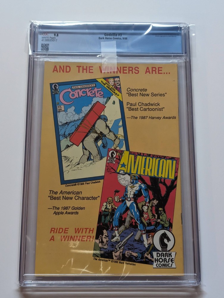 Godzilla #3 CGC 9.8 1988 White Pages Dark Horse Comics 1988.