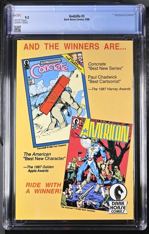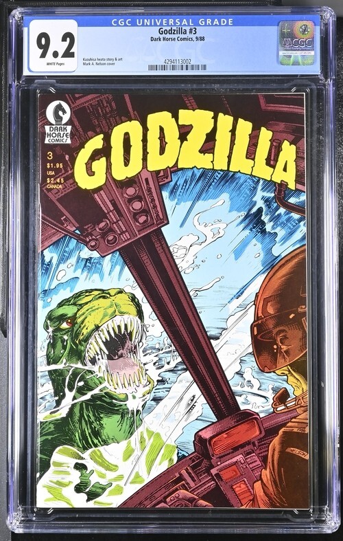 Godzilla 3 (Dark Horse, 1988) CGC 9.2 WP Pages White Shipped Securely and Quickly Priority USPS Delivery Confirmation on Purchases over $200 By Actual Comic Collector Combined Shipping Available (Request Combined Shipping Once You're Done Shopping and I'll Provide Corrected Invoice) Add $.50 per Raw Comic and $5 per Slab Always Happy to Answer Questions or Send More Pictures