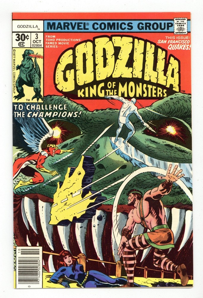 Menu Categories Featured Comics New Comics Comic Book Value Packs Key Comics & First Appearances Pre-Code Horror Comics Good Girl Art Comics Promotional Comics Comics Pre-1940 Comics 1940s Comics 1950s Comics 1960s Comics 1970s Comics 1980s Comics 1990s Comics 2000s Comics 2010-Curent Other Comics Graphic Novels, Books Fanzines Vintage Paperbacks Pulps and Digests Men's Adventure Non-comic Magazines Godzilla #3 FN+ 6.5 1977 Grade FN+ 6.5 Year 1977 Publisher Marvel This is a mid grade item. It will have enough minor defects that it is in clearly worse condition than a brand new freshly published comic, magazine, or book. Allowed defects for this grade include: a spine split of less than half an inch, minor water spotting or other residue, impacted corners, and an accumulation or spine stresses that may break color. An item could be assigned this grade due to either an accumulation of minor defects or one or two moderate defects. Description "A Tale of Two Saviors!" Guest-starring the Champions. Story by Doug Moench. Art by Herb Trimpe and Tony DeZuniga. Godzilla's west coast tour continues as the great monster arrives in world famous San Francisco Bay with S.H.I.E.L.D. in hot pursuit. But San Francisco is not without its own heroes. Hercules, Black Widow, Ice Man, and the Angel, otherwise known as the Champions, attempt to halt the King of all Monster's rampage before it is too late. Grading & Packing We take pride in our accurate, consistent grading. You can be confident in receiving a well-graded comic when ordering from us. We understand that condition is important to collectors. We pack your comics with professional care and high-quality packaging to insure your purchase reaches you safely. About Us We opened our first comic retail store in 1977 and operated a chain of eight comic book stores in the 80s, 90s, and 2000s before going online-only. We are the world's largest comic book seller and the biggest and most trusted comic seller on eBay with over 3.6 million comics sold. We Buy & Consign We buy tens of thousands of comics every month from collections large and small, old and new. We also accept consignments and will get your comics listed on eBay for you. Check out our website for more info. Copyright © 2025 MyComicShop & Lone Star Comics. All rights reserved.