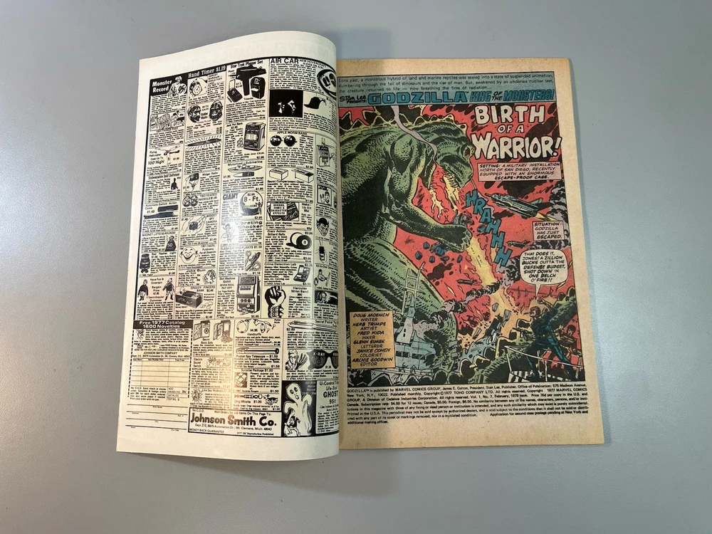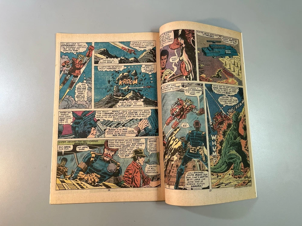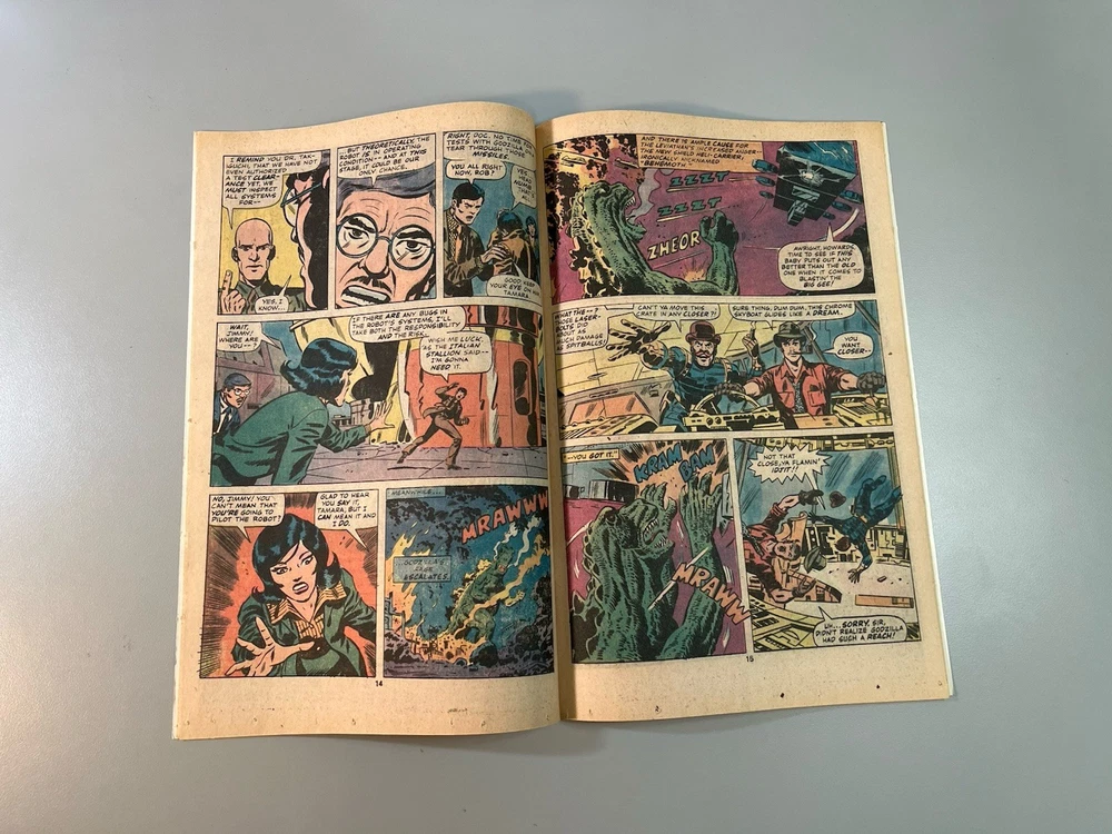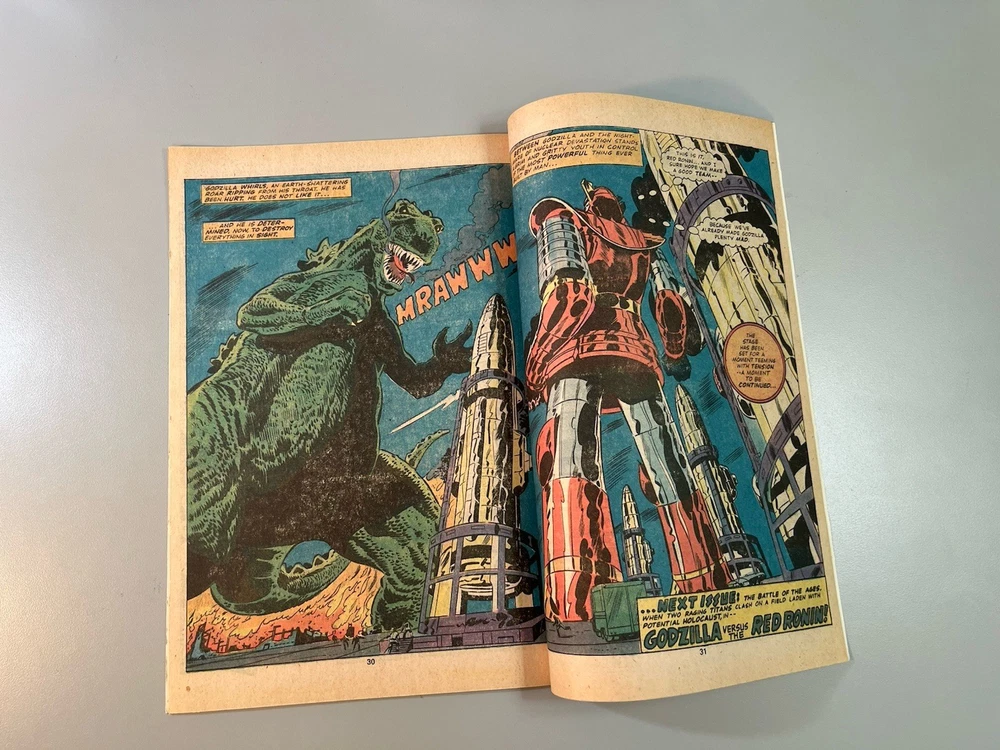 Godzilla #7 (Marvel 1978) 🔑1st Appearance Red Ronin **Very Fine+ or Better?** Ships bagged and boarded in Gemini mailer. The product is a Godzilla #7 comic book from Marvel Comics in 1978, featuring the first appearance of Red Ronin. This vintage comic falls under the Bronze Age era and is a key issue for collectors due to its significant character debut. With artwork by Herb Trimpe and written by Doug Moench, this English-language comic provides a colorful and engaging experience for fans of the Godzilla universe within the Marvel (MCU) and Toho worlds. The single issue format makes it a sought-after piece for comic book enthusiasts and fans of monster-themed genres.