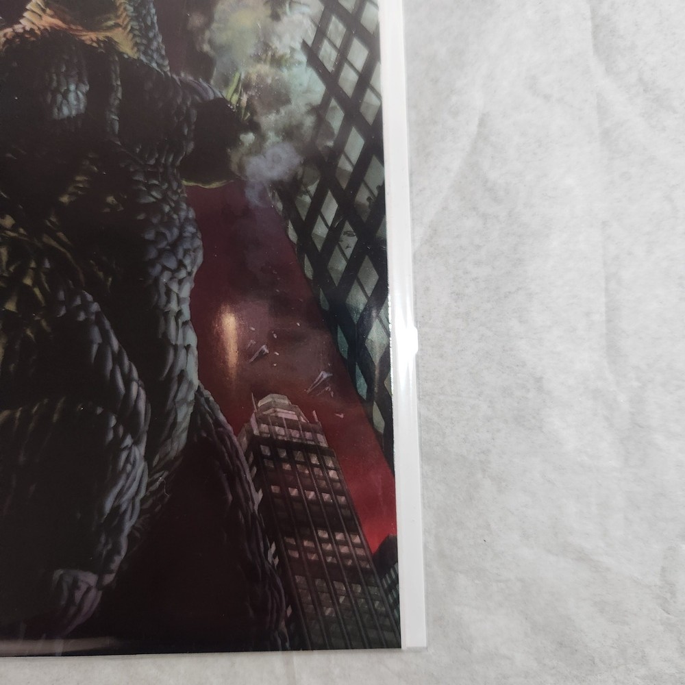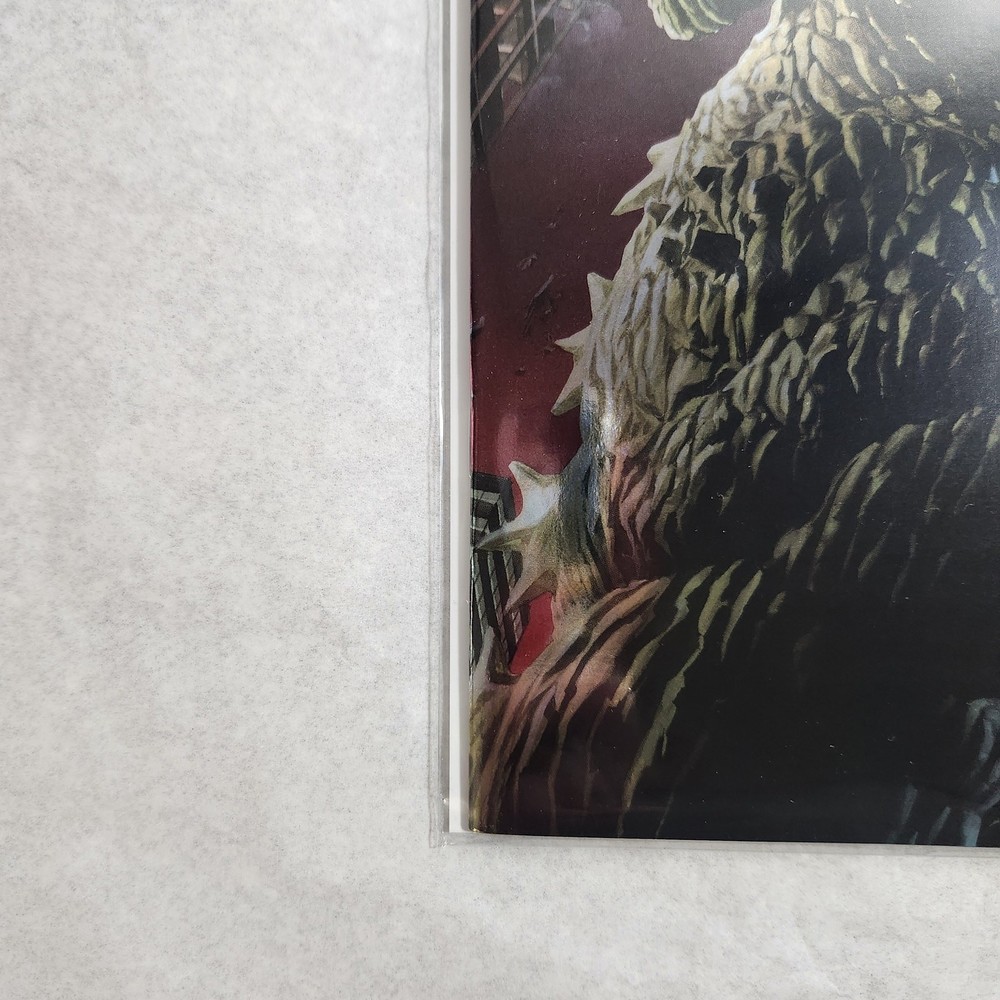 This comic is a must-have for any Godzilla fan! The foil cover absolutely pops with vibrant colors, and the artwork by Powell, Marsh, and Hester is stunning. The near-mint condition is flawless, and it comes securely sleeved and boarded for protection. A perfect addition to any collection—highly recommend grabbing this 70th-anniversary gem before it’s gone!