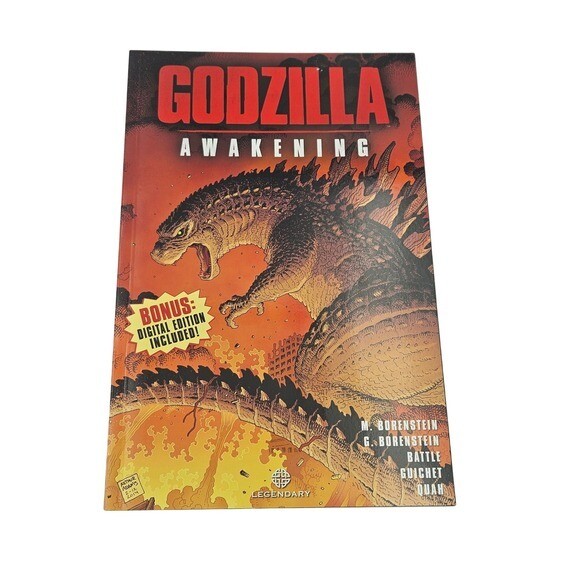 Unleash an incredible mystery spanning generations with Godzilla Awakening, a captivating graphic novel that delves into the dawn of the atomic age. Humanity reckons with lifeforms beyond imagination, unlocking immense forces of nature. This official graphic novel ties into the new motion picture from Warner Bros. Pictures and Legendary Pictures, revealing exciting secrets and adventures that unfold before the film. The book includes a bonus digital edition. Perfect for a quiet evening of immersive reading, a thoughtful gift for a Godzilla enthusiast, or an addition to a treasured collection of graphic novels. Series Title: Godzilla Awakening Character: Godzilla, Kaiju Genre: Monster, Adventure, Movie,TV & Music Artist/Writer: Max Borenstein, Greg Borenstein, Eric Battle, Arthur Adams Publisher: Legendary Publication Year: 2014 Format: Hardcover Era: Modern Age (1992-Now) Type: Graphic Novel Tradition: US Comics Keywords: Godzilla, Awakening, Graphic Novel, Comic Book, Legendary, Monster, Kaiju, Digital Edition, Movie Tie-In, Collectable, Book, Comics, Godzilla vs Kong, Warner Bros, Manga