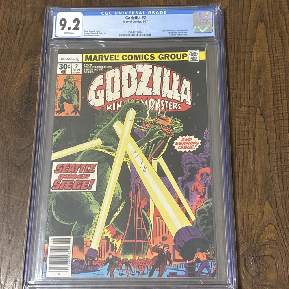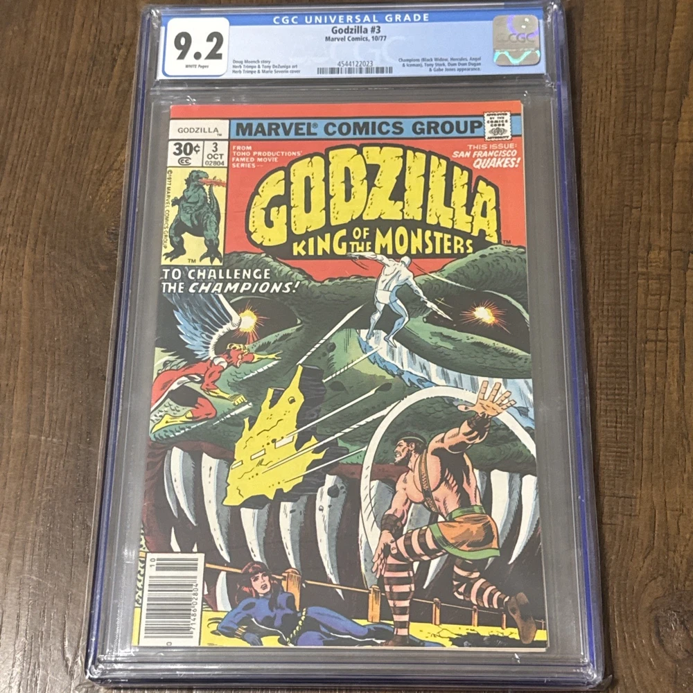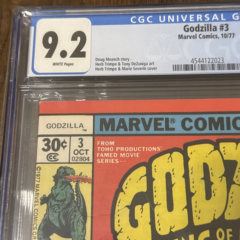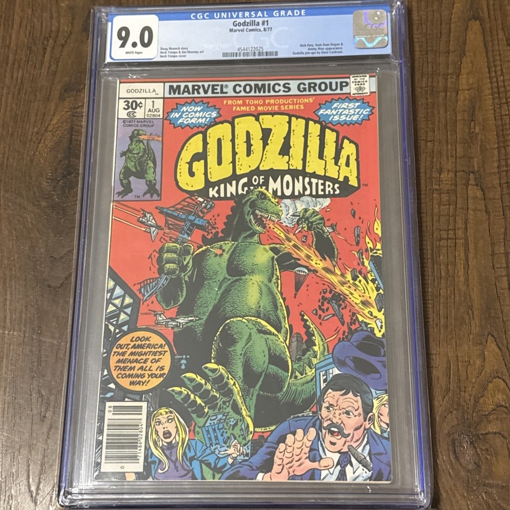 This is a lot of three copies of the first 3 issues of Godzilla comic book from 1977, all of which have been professionally graded by the Certified Collectors Alliance (CGC). The comics are in excellent condition, with no writing or marks on the pages, and are a must-have for any serious collector of US comics. The lot includes the first issue of the original Godzilla series, which features the iconic monster in all his glory. The comics are part of the Tradition of US Comics and are perfect for fans of the character. The series title is Godzilla and the issue number is 1. This is a rare opportunity to own a piece of comic book history, so don't miss out on this chance to add these valuable comics to your collection.