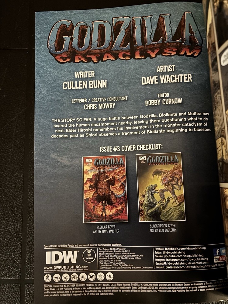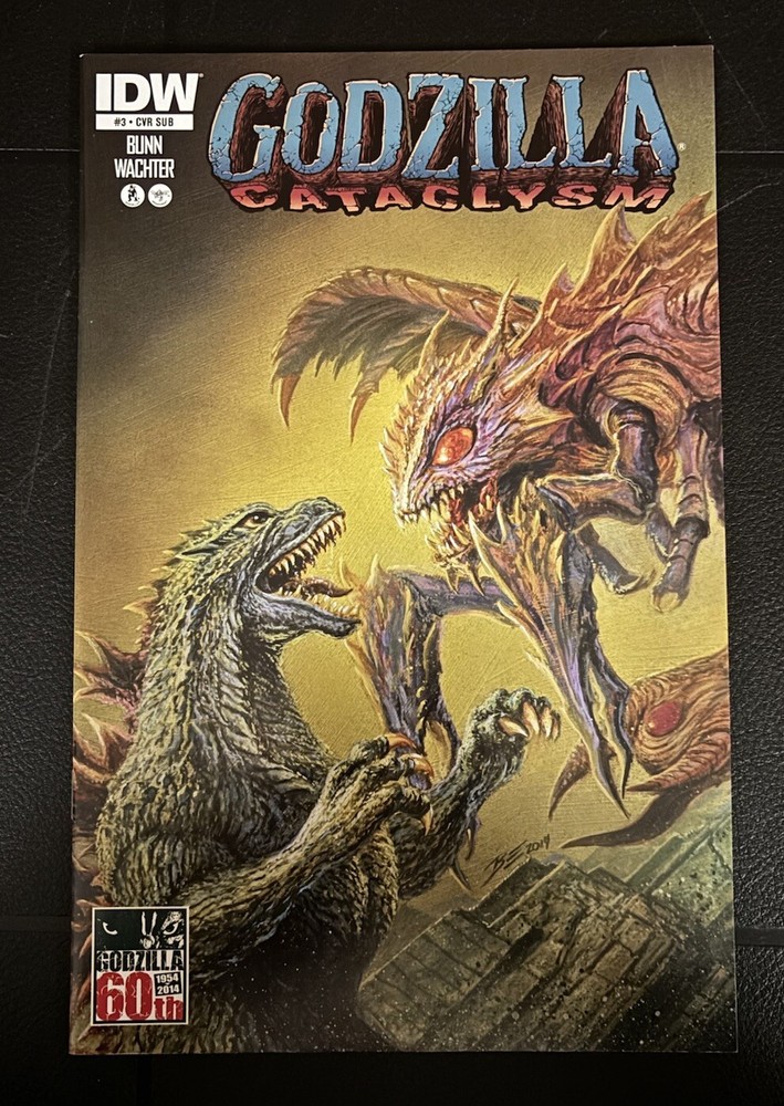 Godzilla Cataclysm #3 Subscription Variant Cover from IDW Publishing published in 2014. This variant cover is very rare and hard to find. This copy is in NM condition. Comes bagged and boarded. Contains in house ads only. Shipped with USPS Media Mail in a Gemini mailer. Ground Advantage is also an option.