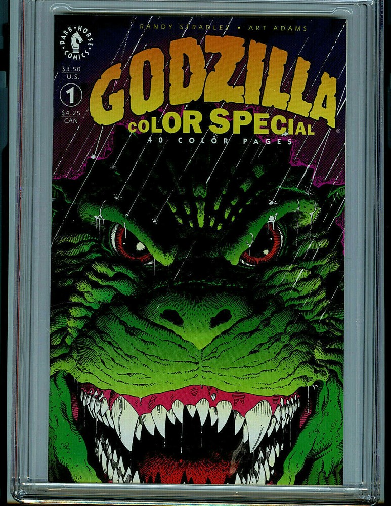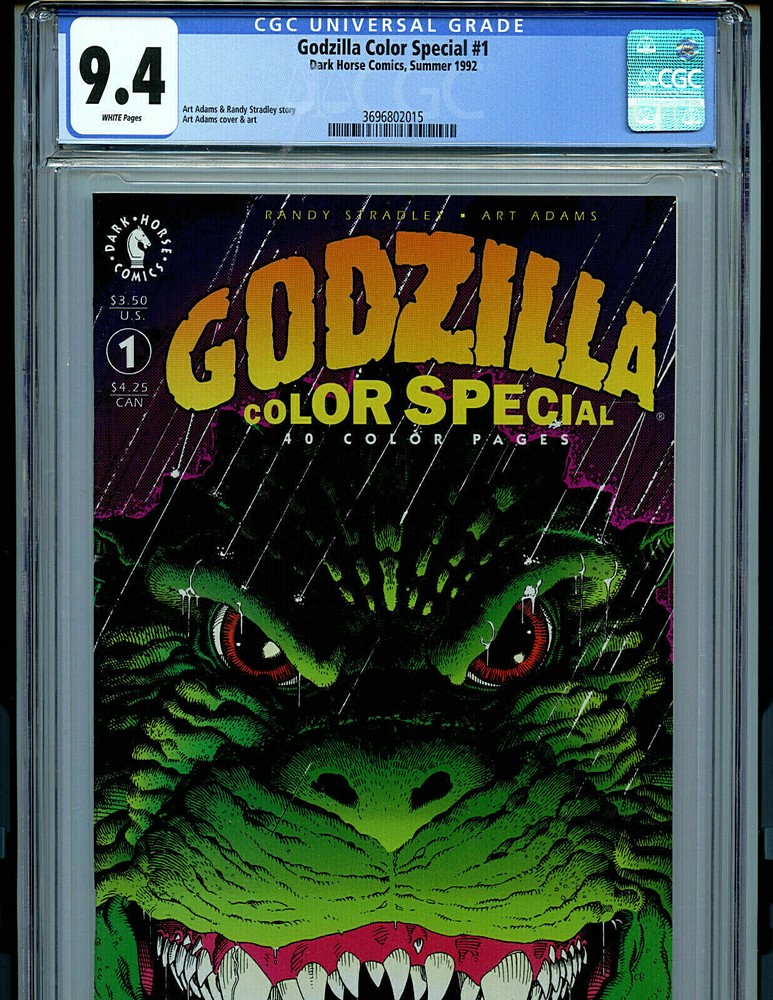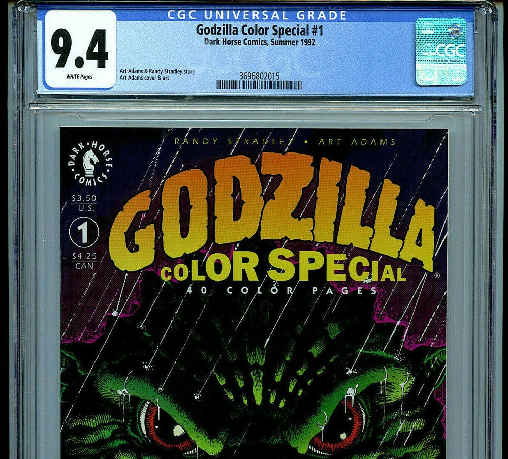 You are buying a copy of Dark Horse Comics Godzilla Color Special #1 comic certified and graded by CGC as being in 9.4 NM condition. Published and released in 1992. Godzilla fans, you know who you are, this is a must have for your collection. With Godzilla approaching an inhabited island, G-Force's attempt to evacuate the islanders proves unsuccessful. Could awakening Gekido-Jin be everyone's only hope? Story & script by Arthur Adams & Randy Stradley. Art by Arthur Adams. Art assist by Gracine Tanaka & Steve Moncuse. Front & back covers by Adams. 40-page tale. No ads. Cover price $3.50. PAYMENT & SHIPPING TERMS Payment is expected 1-3 days after the close of the transaction, we may elect to cancel the transaction and re-list this item if payment is not made within that time frame US BUYERS pay $18.99 for shipping within the 48 states. California residents please add 8.75 % for sales tax. International shipping for this item is higher than for shipping within the US. International buyers please make sure to inquire about shipping & payment options to your address before making your purchase. . INTERNATIONAL BUYERS . Shipping to international addresses cost more than shipping within the US. Please make sure to inquire about shipping costs before you make any purchase. We use insured priority airmail as our default shipping method. .PAYMENT OPTIONS & TERMS: We accept PAYPAL: Please check our other items at our Ebay Store at: American Icons Collectibles We have many great items at our eBay store and we have hidden some real bargains for your viewing and shopping enjoyment. You can buy this item or many other great items now from our eBay store at: American Icons Collectibles Check out our other eBay auctions! Add Me to Your Favorite Sellers American Icons Collectibles selling Collectibles Since 1989 OUR BUSINESS HOURS ARE M-F 11-7 PST Closed Weekends & Holidays Search For Items At American Icons Collectibles Search titles and descriptions